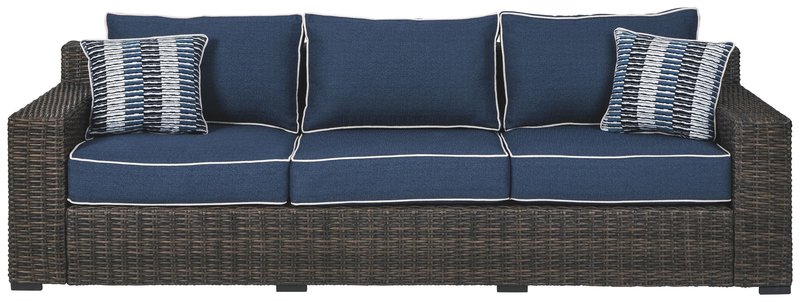 Style. Comfort. Quality. Value. This sofa with cushion really goes to town, giving you the total package for outstanding outdoor living. Crafted to withstand the elements, this outdoor sofa's resin wicker base and rust-proof aluminum frame ensure carefree living, while the plush cushion covered in fade-resistant Nuvella� fabric provides stylish appeal. Comfy and casual, it's perfect for use inside or out.