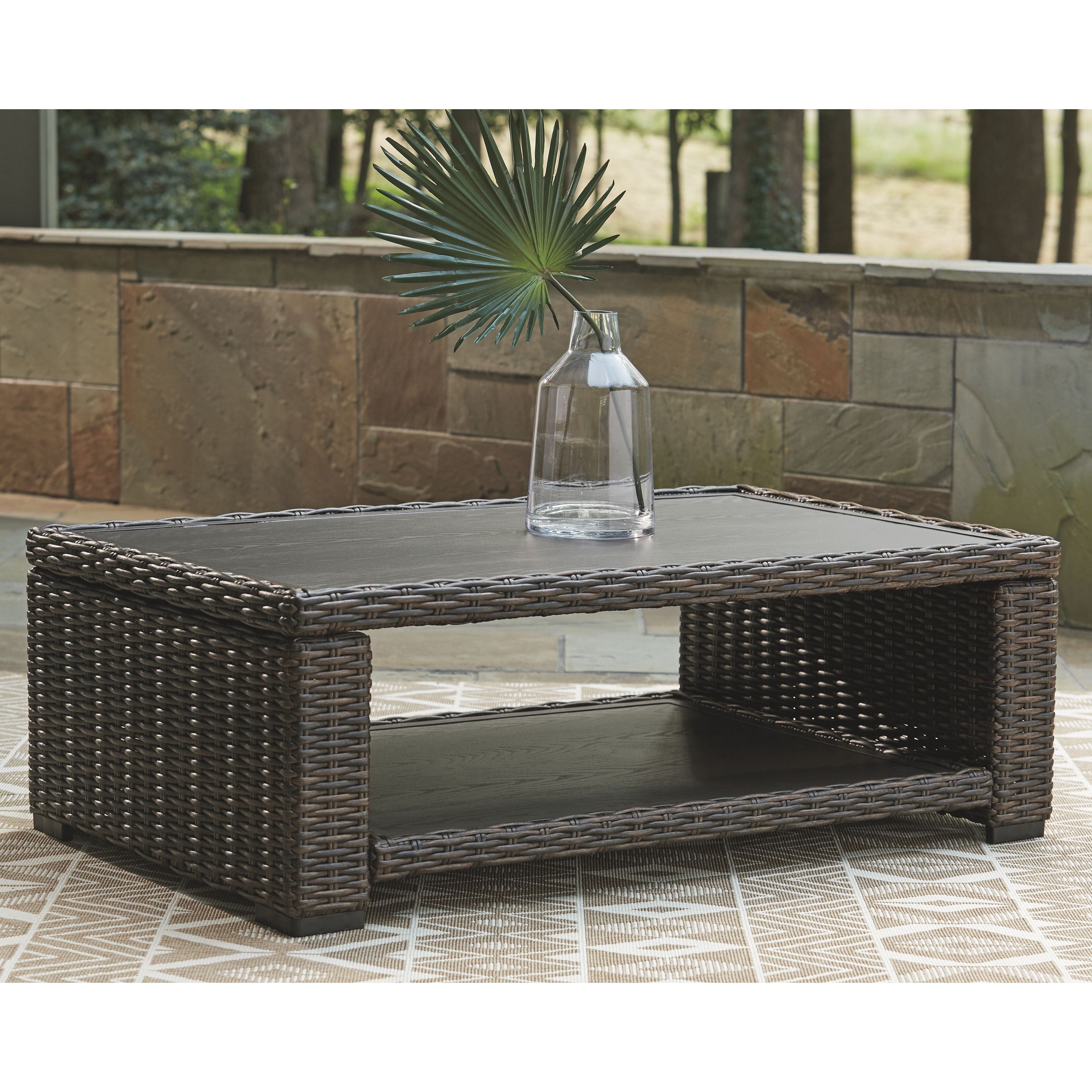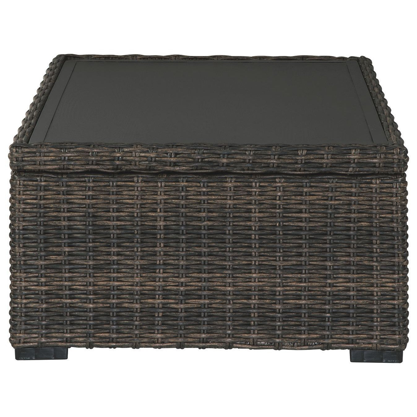 Style. Comfort. Quality. Value. This outdoor coffee table really goes to town, giving you the total package for outstanding outdoor living. Crafted to withstand the elements, this outdoor table's resin wicker base and rust-proof aluminum frame ensure carefree living, while the aluminum surfaces provide stylish appeal. Cool, clean lined and casual, it's perfect for use inside or out.