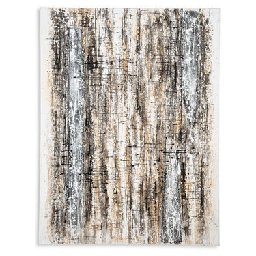 Dress up your decor in striking style with this wall art. An eye-catching abstract design in neutral shades, it showcases hues of gray, brown, gold, black and white. Hang it one of four ways to complete your curated contemporary space.