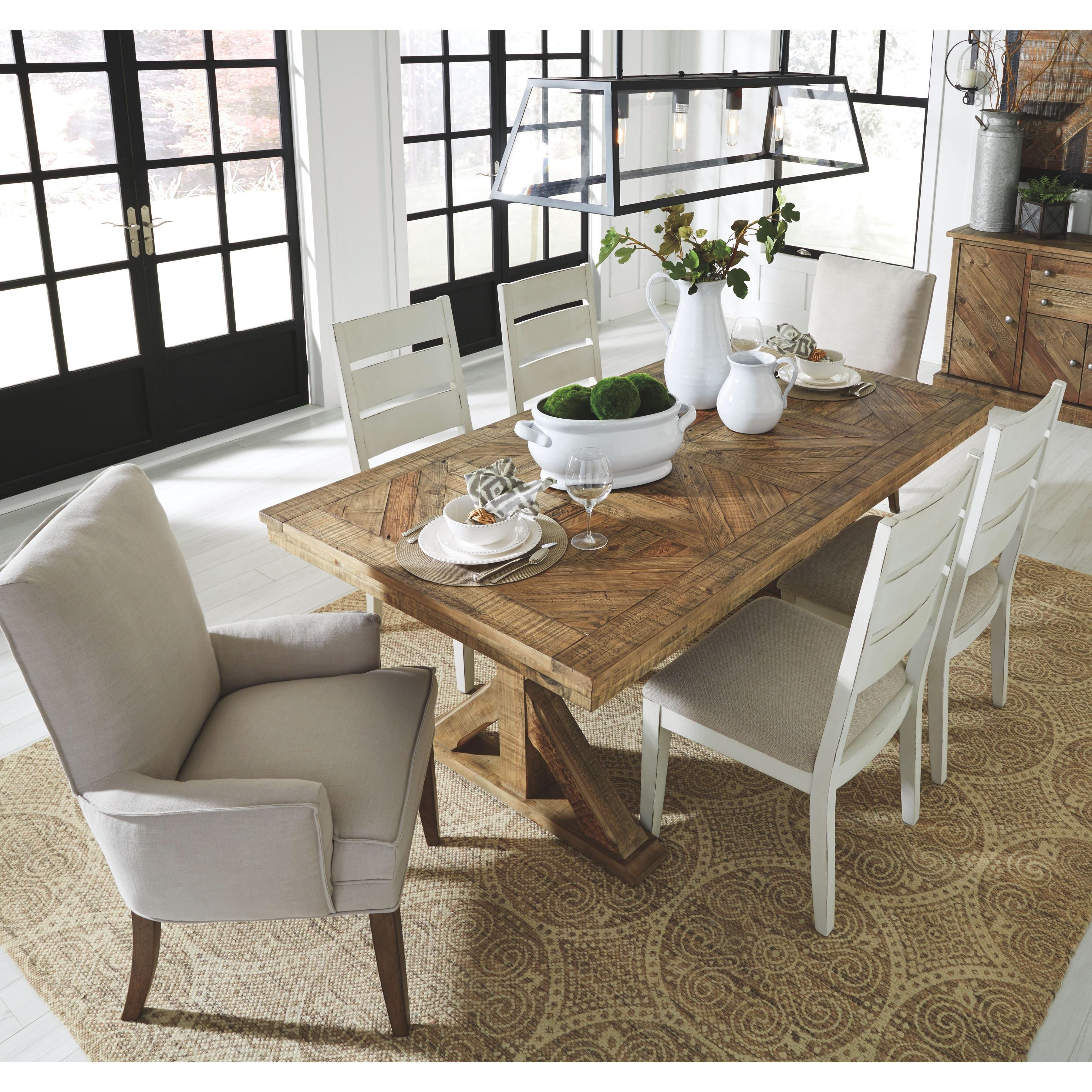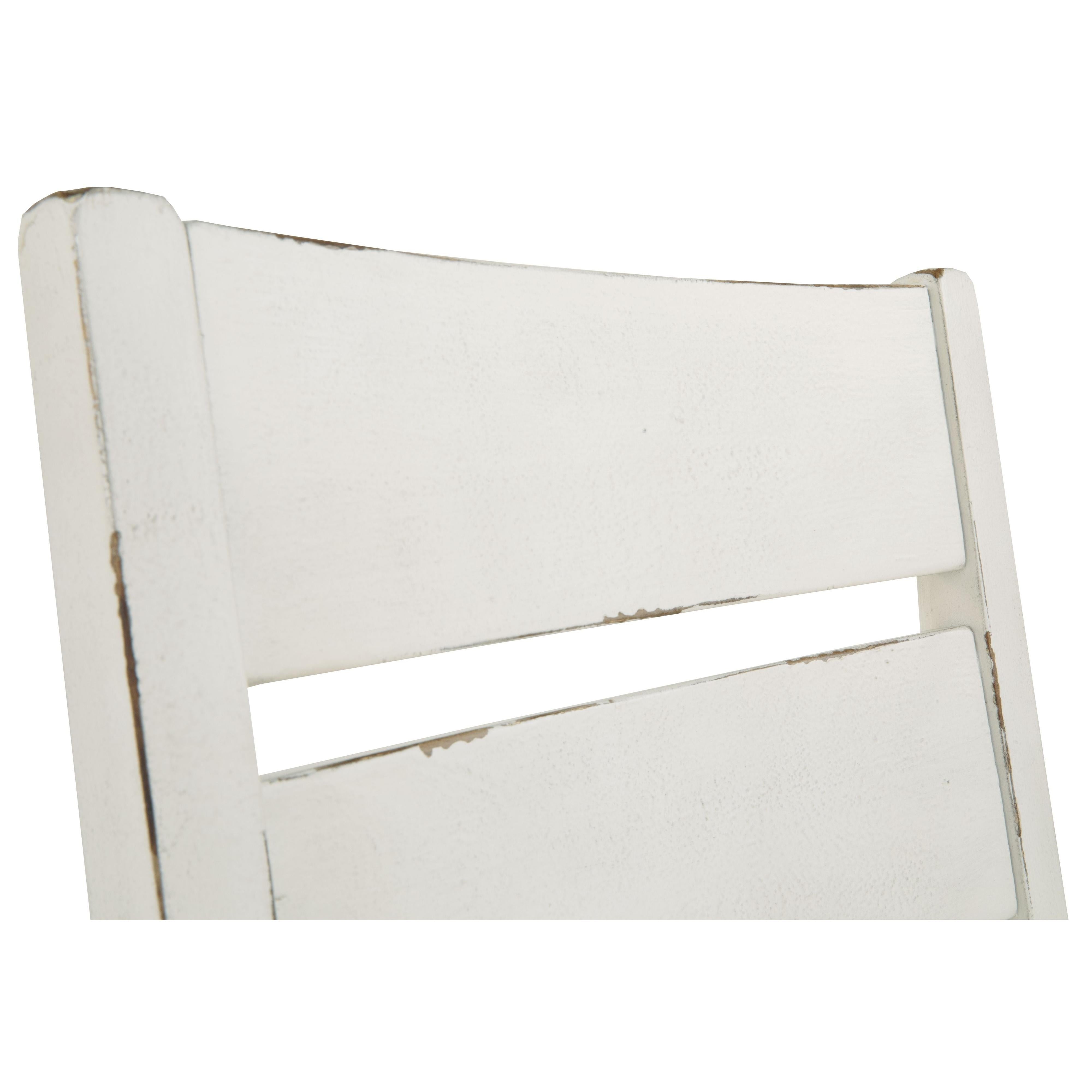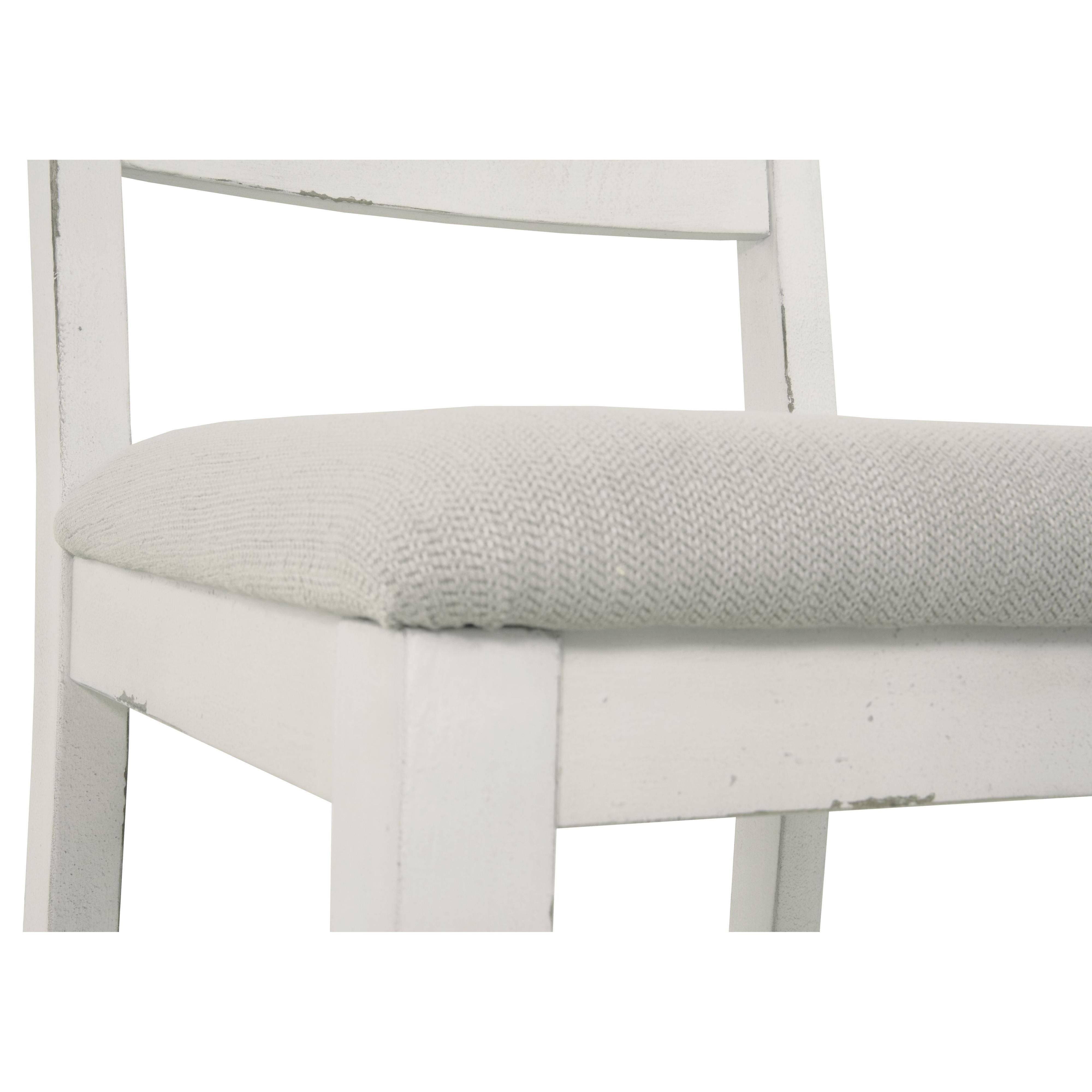 Comfortable and functional. This upholstered dining chair is a well-designed country cottage inspired piece. Wood frame with textured white finish showcases supportive broad ladder back design. Seat cushion is upholstered in a stunning light gray. Easy-to-clean Nuvella� fabric is bleachable and incredibly colorfast, even in sunlight. This innovation eases your worry when food takes a plunge from your heartwarming farm to table meals.