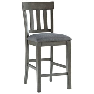 Cool and on-trend. This upholstered barstool sports a two-tone gray look for a contemporary-yet-casual feel. The cushioned foam seat in a gray textural fabric pairs seamlessly with the antiqued gray finish, while the contoured comb-back design adds a dash of geometric flair. With this chic seat, it's easy to dine in style.