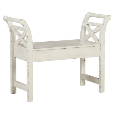 Do you have a soft spot for the classics? Well, you've just found your new favorite. Rough and smooth come together in this bench, outfitted with vintage-inspired details like the classic "X"motif in a charming antique white. Cleverly designed with hidden storage space, this multi-functional piece is a fresh take on tried and true style.