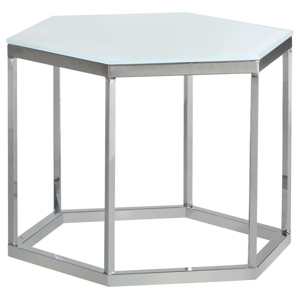 Hexagon - Glass Top Accent Table - White