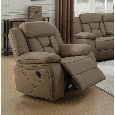 Crafted for comfort and durability, this glider recliner is an instant living room upgrade. available in multiple colors, it offers a variety of attractive options to match your decor. the thick, plush padding of its seat, back, and armrests offers exquisite softness and comfortable support. its soft upholstery boasts a subtle, stitched design, giving it a stylish look. this recliner is crafted from quality materials for the ultimate lounging experience.