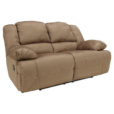 With supremely padded back, seat and arm cushions, this reclining loveseat is the hero of comfort. Microfiber upholstery is soft and sumptuous and the extra-wide seat is large enough to practically accommodate the whole family. Recline the back and kick up your feet to bolster your comfort level even more.