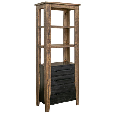 Crafted in a rustic design, this bookcase is the perfect place to show off your favorite books, as well as conceal some extra items. This piece features a unique light wood frame, with dark wood drawers, providing the perfect contrast.