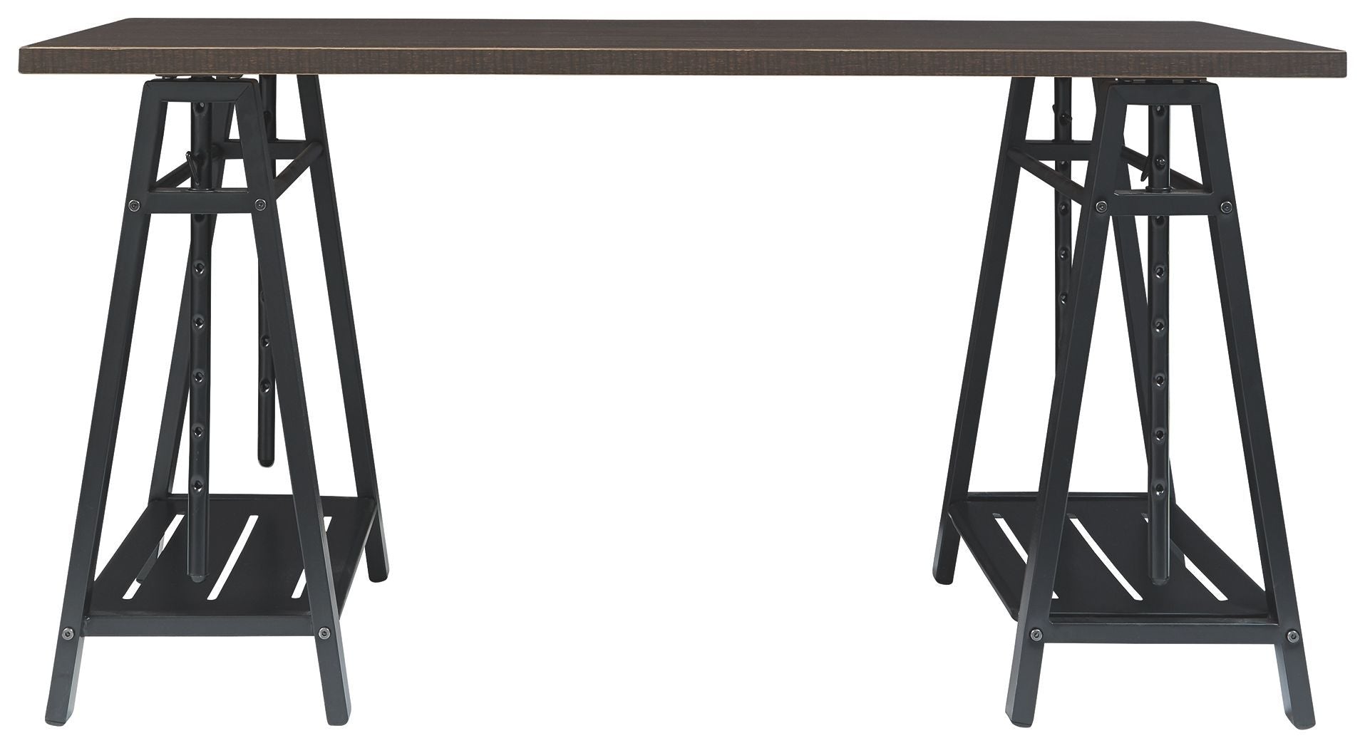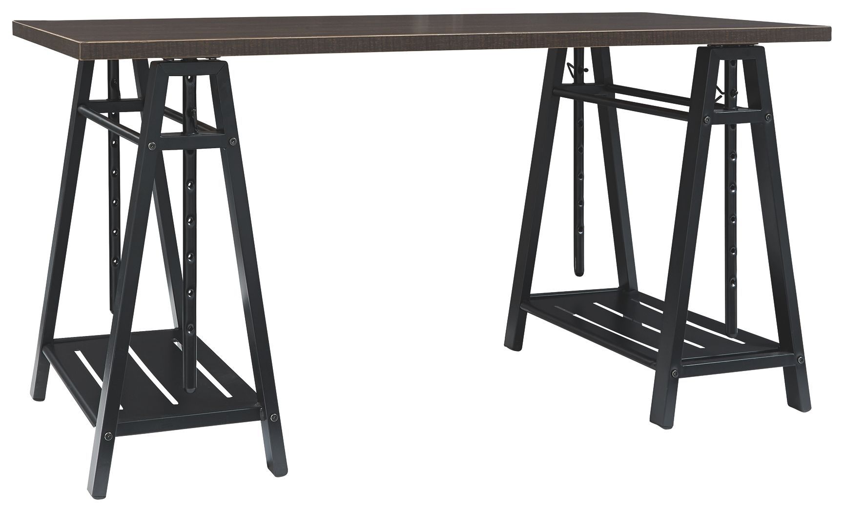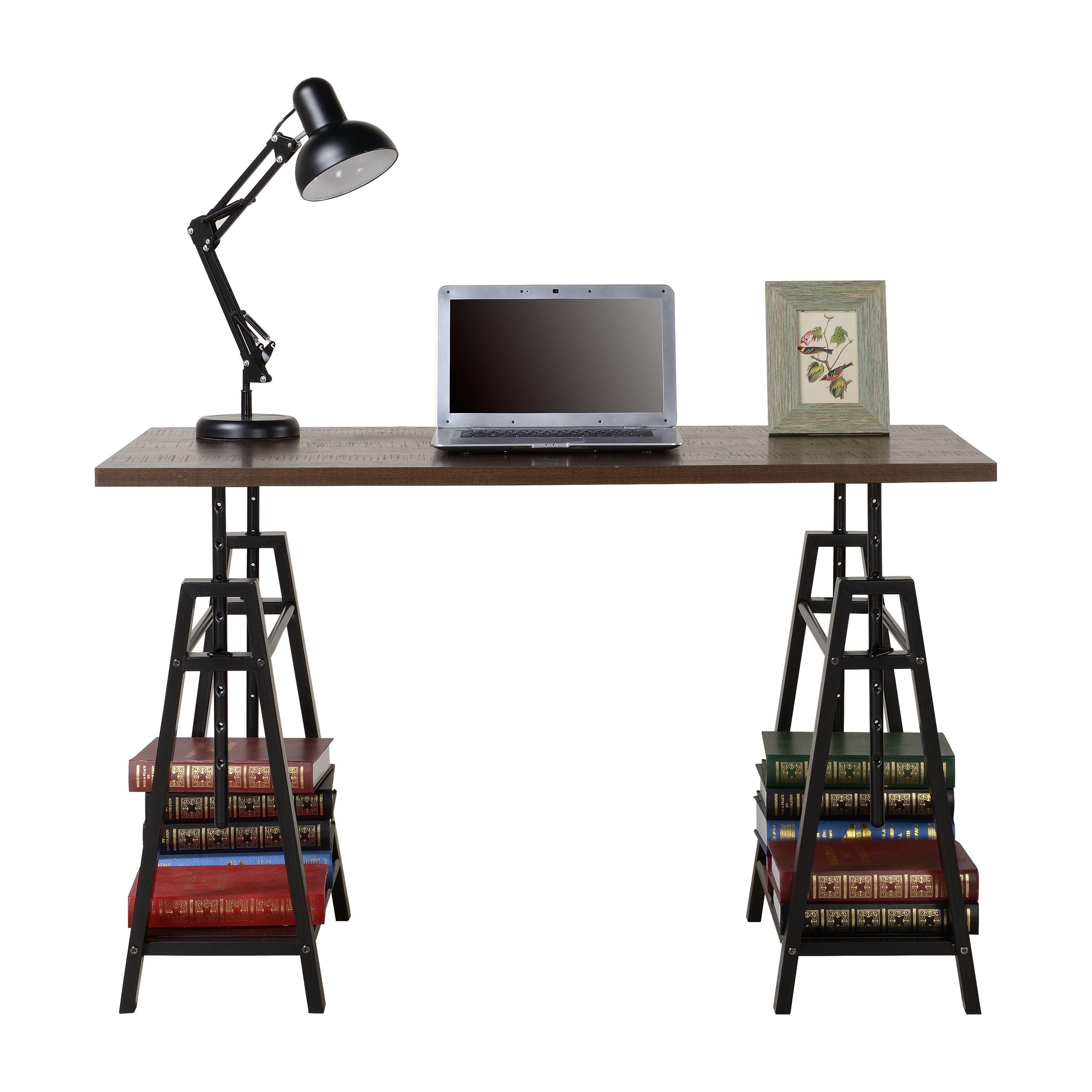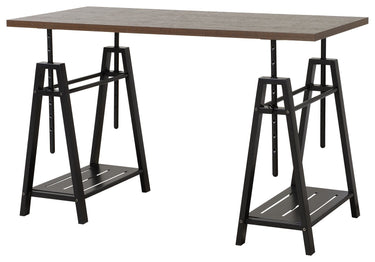 Elevate your style and your productivity with this adjustable height desk. An especially cool look for those short on space, this minimalist-chic desk with open storage shelves and sawhorse legs offers eight height adjustment settings to give you plenty of options when working on homework, art projects or just relaxing. This desk's two-tone combination of warm brown wood tones and tubular black metal is contemporary style at its best.