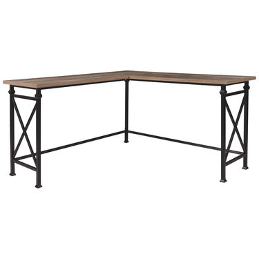 Whether you're working a classic, contemporary or modern farmhouse aesthetic, this two-tone home office corner desk has the corner on style. Offering loads of surface space, this corner desk pairs a "reclaimed"top with a sturdy black metal base with X-brace design for maximum style with minimal fuss.