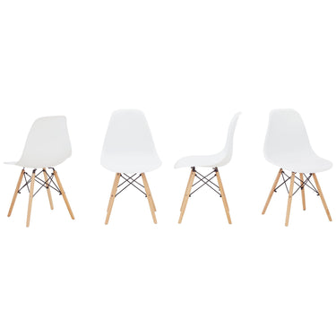 A contemporary take on a classic look, this dining room side chair adds a touch of artistic flair to your dining experience. The moulded white plastic seat with metal and beech wood base is intricately eye-catching. Its streamlined silhouette allows you and your guests to dine in style.