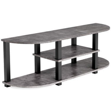 Love urban contemporary styling? Then you're sure to find this TV stand right in tune with your design sensibility. Its distinctive two-tone finish combines a faux cement decorative laminate with contrasting satin black for striking results. This modern TV stand wows with a cool, curvaceous profile and compact footprint that's especially welcome in smaller spaces. And what a great option for your gaming setup.