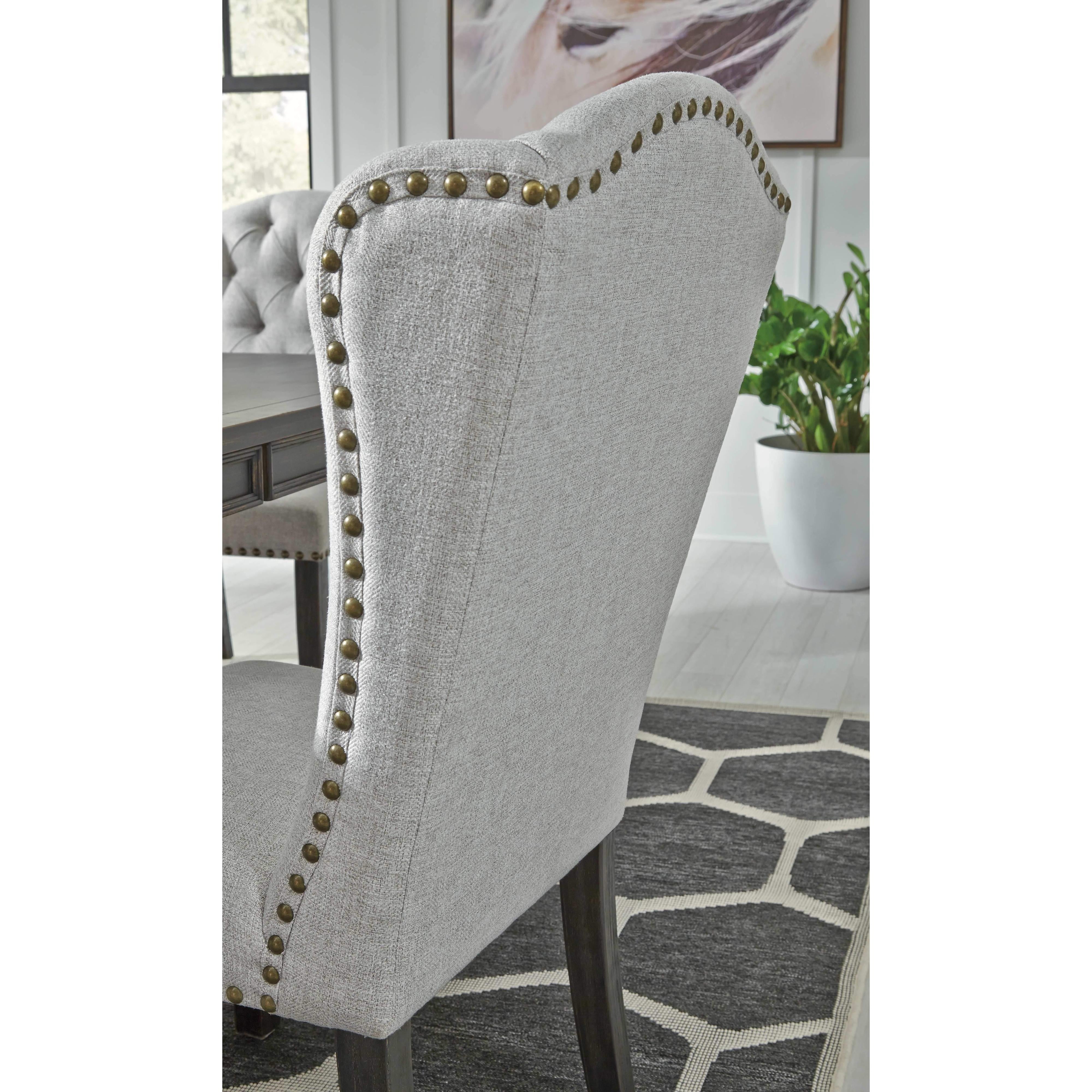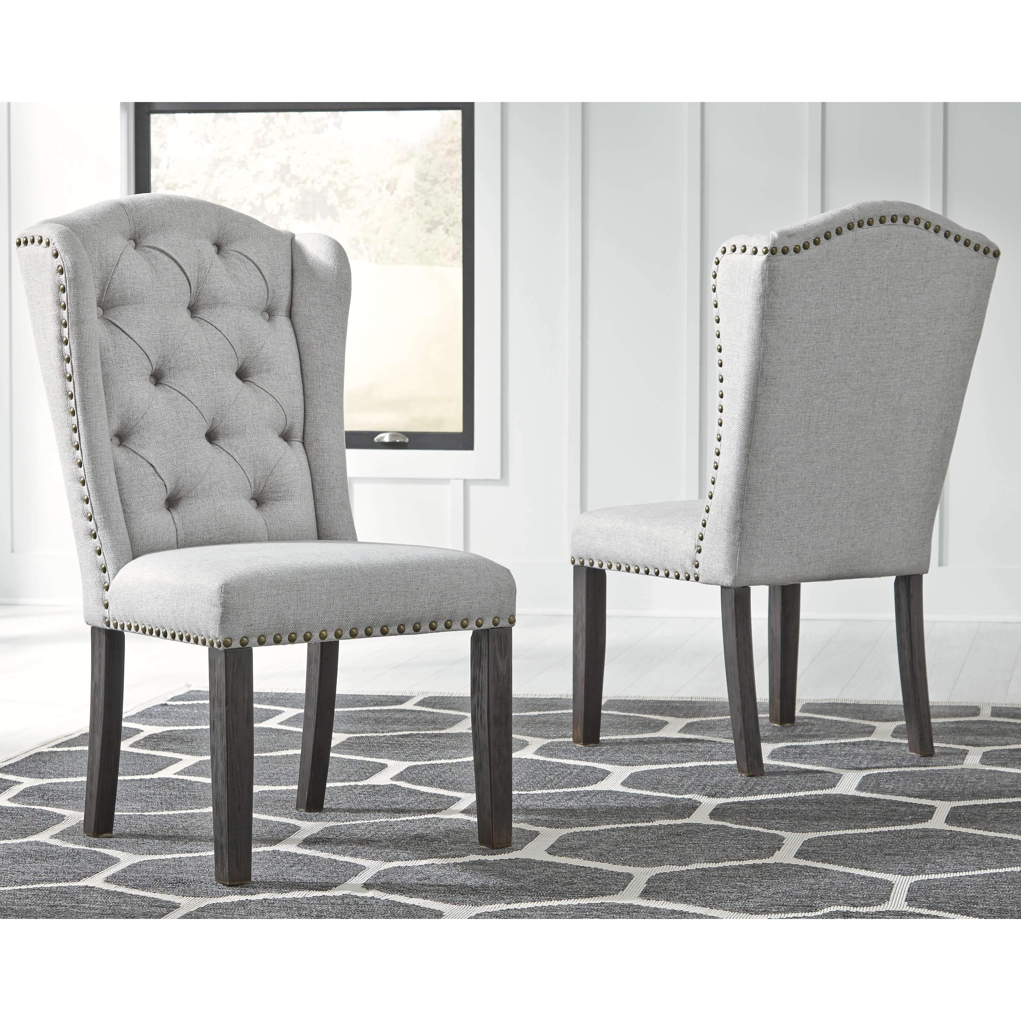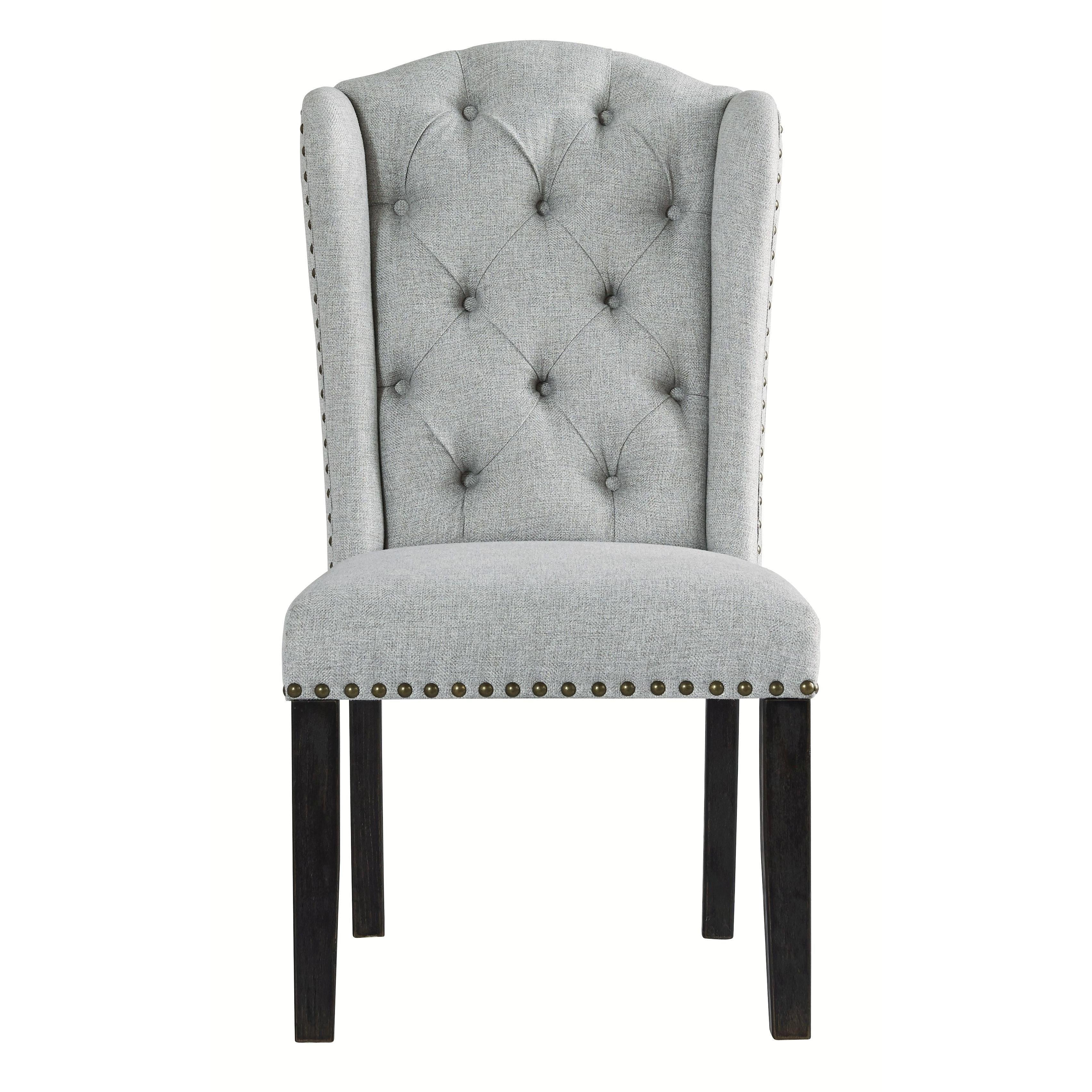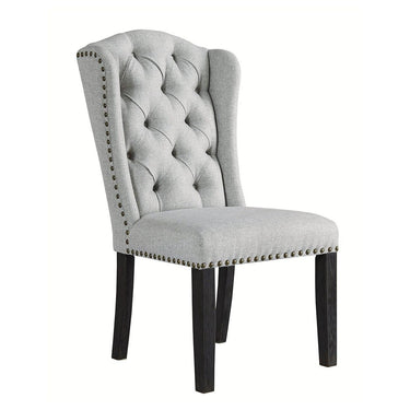 With its fashion-forward take on timeless wingback styling, this upholstered dining chair is a feast for the senses. Richly neutral linen-weave upholstery is punctuated with nailhead trim for trendy flair. Deep button tufting enhances the luxurious look and feel that's designed to make gathering around the table an easy-elegant experience.