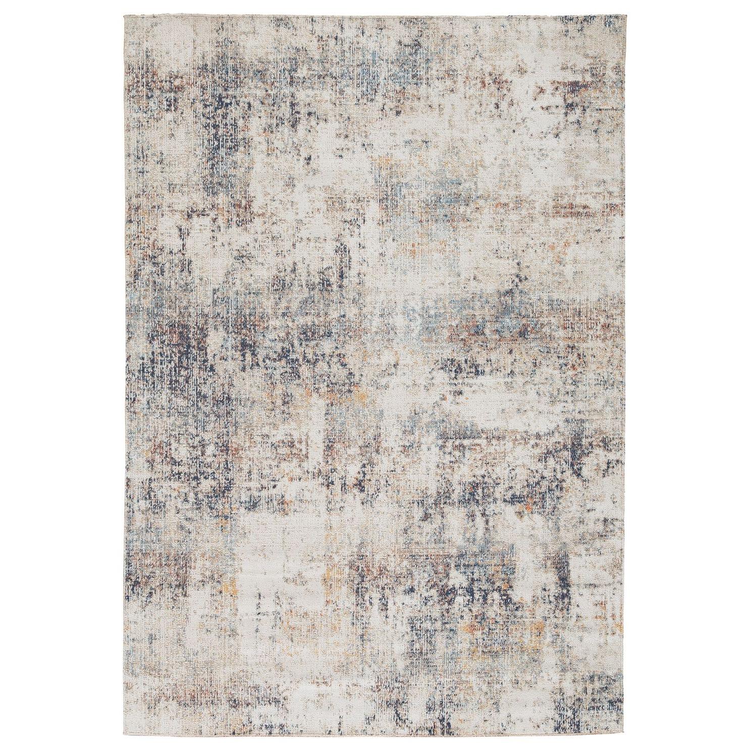 With its striking abstract pattern, this indoor/outdoor area rug leaves so much to the imagination. Its ethereal design-with shades of blue and hues of ivory, gray, mustard and burnt orange-dresses up a room with brilliant color, visual texture and a highly contemporary point of view.