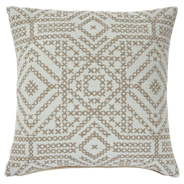 Rediscovering timeless beauty of traditional tribal patterns, this embroidered accent pillow reinterprets iconic textile design. Neutral enough to slip right into any scene.