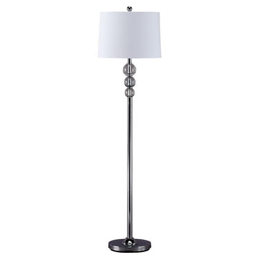 Have a ball beautifying your space with this designer floor lamp. If you're looking for a clean, ultra-contemporary aesthetic, you're sure to find this floor lamp's blend of crystal and chrome-tone metal so delightful. Simply chic drum shade is the perfect complement.