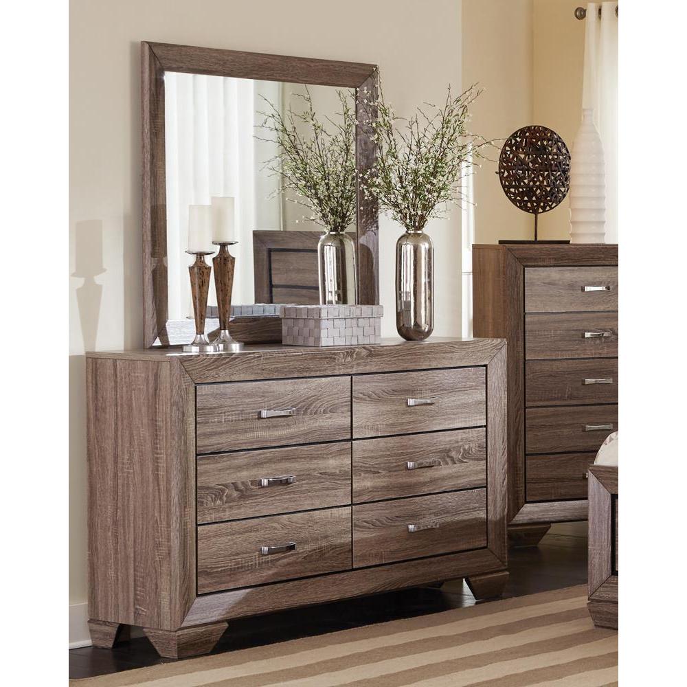 Stylish and light, the soft hues from this six-drawer dresser highlight clean lines. featuring a stunning exposed wood grain, the washed taupe finish radiates sophistication. mid-century modern-inspired, delicately tapered legs combine with metallic drawer pulls to create a refined sense of style. smooth and sleek drawer fronts and sides marry to put the focus on the variations in the natural oak. black recessed grooves around picture framed case drawer fronts adds contrast.