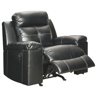 You don't just want to recline. You want to recline in high design. Wrapped in a fabulous black faux leather upholstery, this rocker recliner with 42" high back is everything you long for-and then some. Ultra clean lines, subtle curves and sumptuous comfort make it a sight for sore eyes and tired muscles. Here's the showstopper: ambient blue LED lighting along the chair base for a movie theater experience enjoyed from the convenience of home.