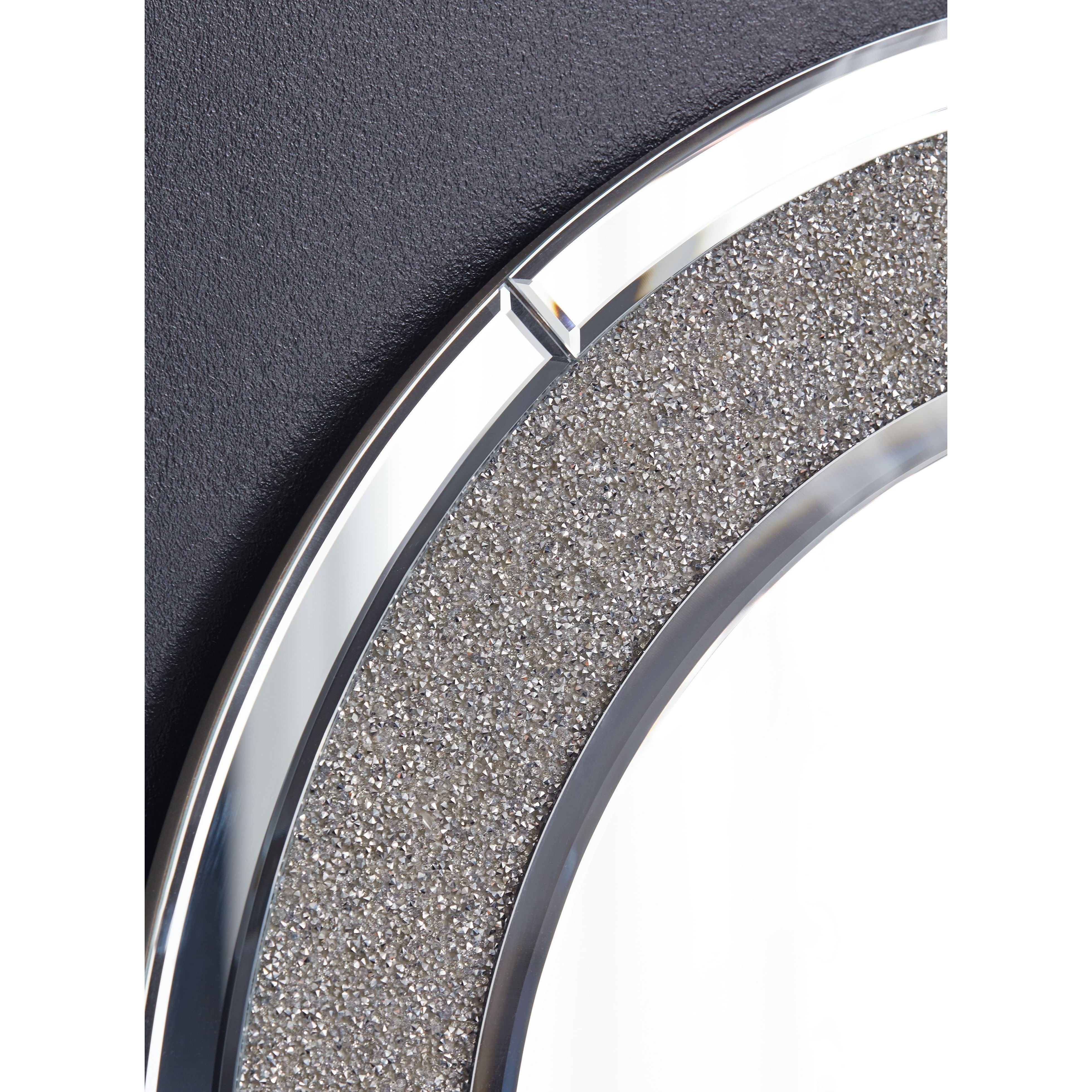 Subtle glitz and glam are in reach with this accent mirror. Beautifully crafted with a cut glass outer frame with delicate crystal beading on the inner frame. The beveled center mirror floats inside the frame adding a soft sparkle to any room.