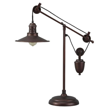 Pull off an urban industrial look with newfound flair with this table lamp. Fully functional "pulley system"is delightfully different. For the ultimate vintage touch, opt for Edison-style light bulbs.