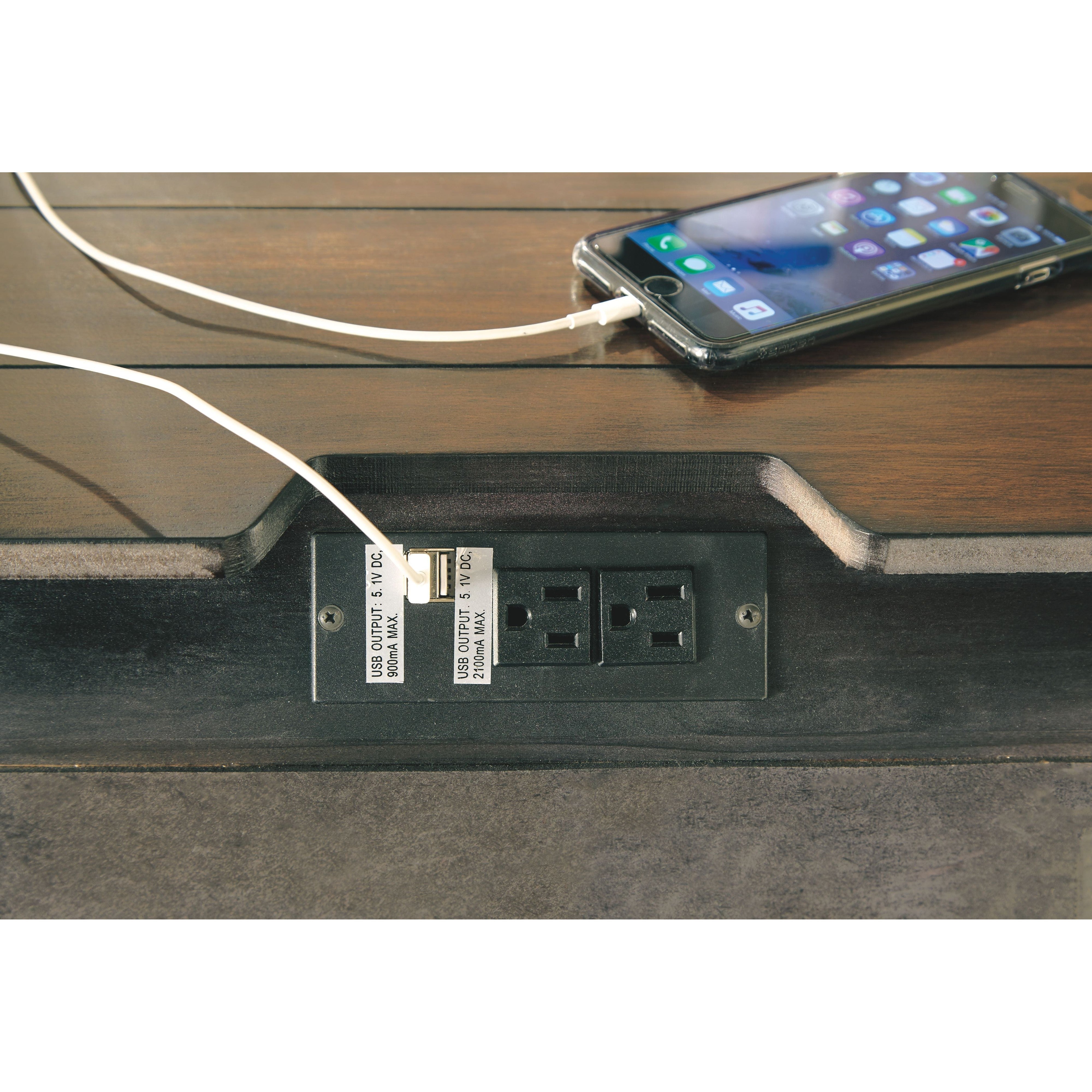 - 2 electrical outlets and 2 USB charging stations