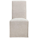 Balancing chic flair with a relaxed sensibility, this skirted side chair strikes just the right tone for rustic sophistication. Creamy beige upholstery and sumptuous cushioning make this chair the epitome of easy elegance, while its gracefully tailored seat-to-floor skirt design adds another layer of dimension.