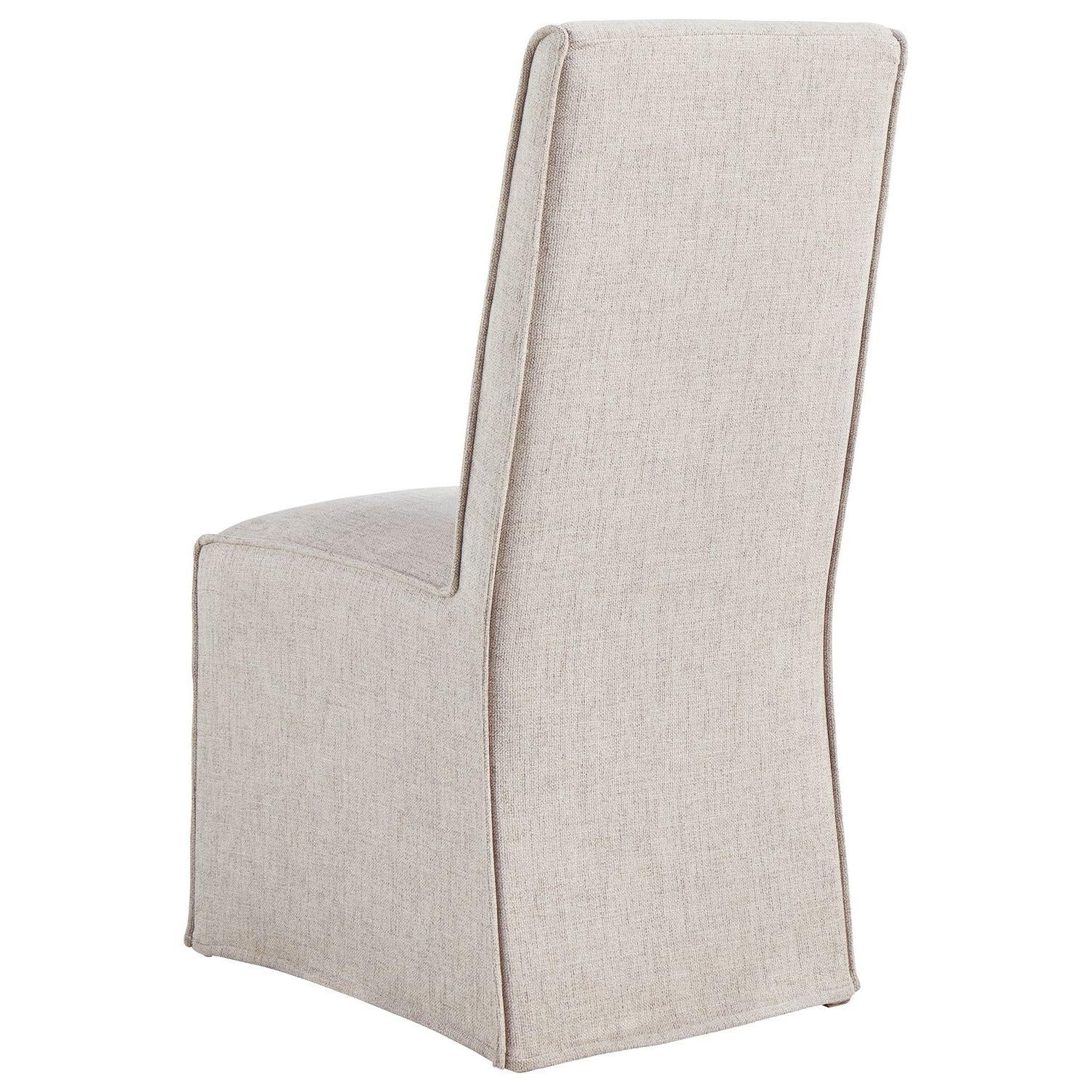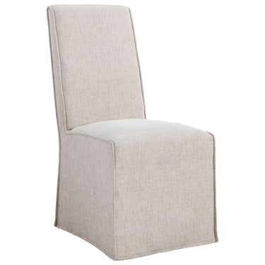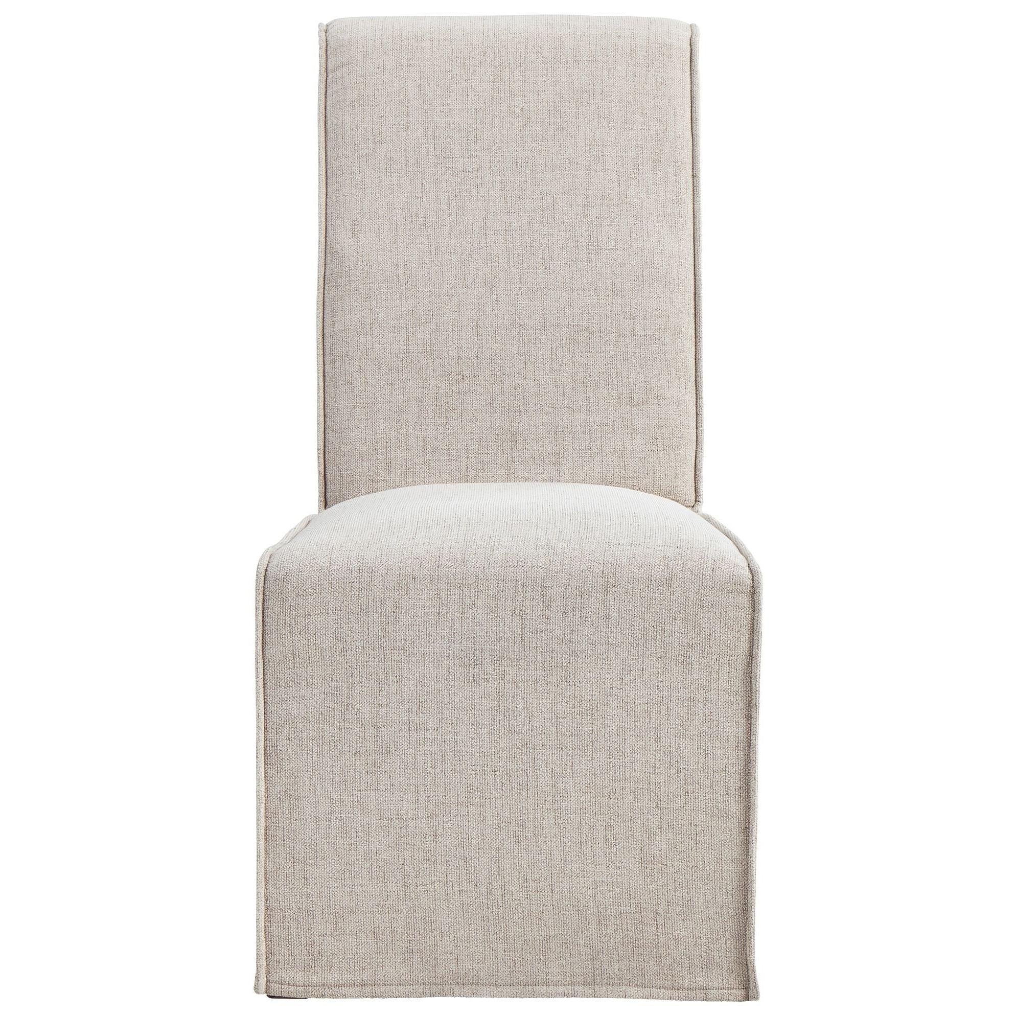 Balancing chic flair with a relaxed sensibility, this skirted side chair strikes just the right tone for rustic sophistication. Creamy beige upholstery and sumptuous cushioning make this chair the epitome of easy elegance, while its gracefully tailored seat-to-floor skirt design adds another layer of dimension.