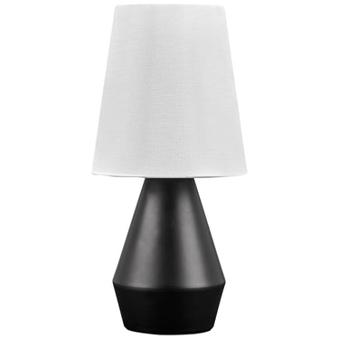 This table lamp has a retro modern look that imparts a timeless elegance to any home or office. Its uniquely designed metal base is softened by a white fabric drum shade. A built-in USB port keeps your electronics charged. The aesthetic will brighten your living space wherever the lamp is placed.