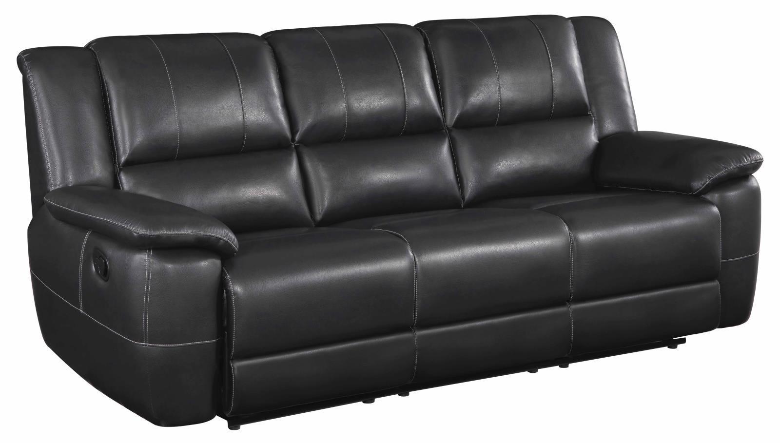 This motion sofa delivers the best of style and function, making a contemporary space airy and elegant. nicely padded seats and seat backs ensure a fabulous experience. enjoy the easy-care bonus of a smooth, breathable pu match. bold black with contrasting white stitching delivers an inspiring look. this motion sofa creates a casually comfortable seating venue for a sports entertaining room or a central living space.