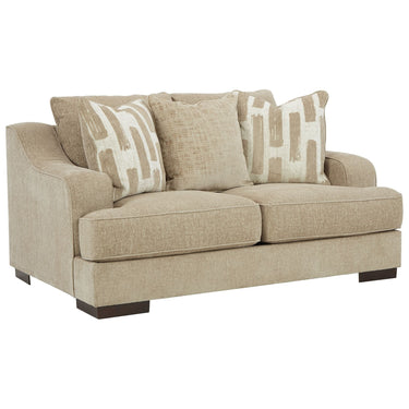 With a comfy, cozy aesthetic, this loveseat is warm and welcoming in a neutral beige hue. Softly curved slope arms add a polished touch to the irresistibly plush cushions. Whether you're curling up with a book or tuning in to TV, this piece brings subtle charm to your space.