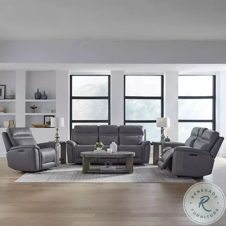 Liberty Cooper Power Reclining Sofa in Blue Gray Leather
