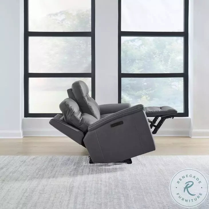 Home Liberty Cooper Power Reclining Sofa in Blue Gray Leather