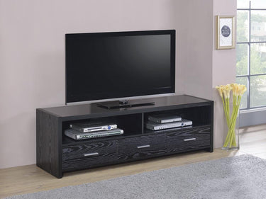 62" tv console, black oak, 61.25 x 17.75 x 19.75"h.