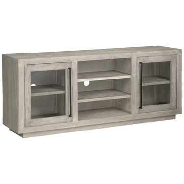 This accent cabinet is a stoic piece with a sense of casual luxury. It has a sculptural feel with a hand-applied gray wash finish, while dark gunmetal door pulls add a hint of relaxed refinement. Whether you use it for display or storage, this cabinet elevates your space with contemporary style in a snap.