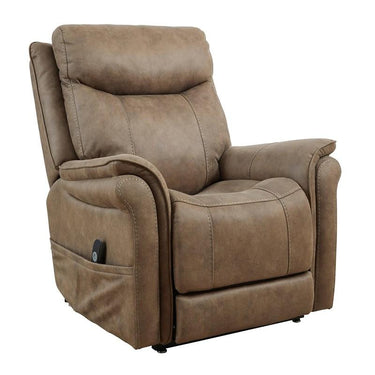 The Lorreze power lift recliner does the work for you, easing you to your feet from a relaxed sitting position or fully reclined. Irresistibly comfortable and ruggedly handsome, the neutral driftwood shade fits most any color scheme and room decor. This recliner has a heating element in the seat, plus a massage function to ensure total relaxation, so complete comfort is a foregone conclusion. With heavyweight padded faux leather for long-lasting durability, you'll be able to enjoy this recliner for quite a while.