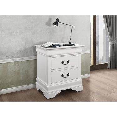 Add elegance and charm to your bedroom with this chic, two-drawer nightstand. this nightstand comes in a white finish with soft, felt lined drawers. kenlin glides create a sturdy drawer foundation, protecting your precious valuables. its simple design exudes an air of royalty, without sacrificing functionality. this nightstand will transform any master bedroom into a luxurious retreat.