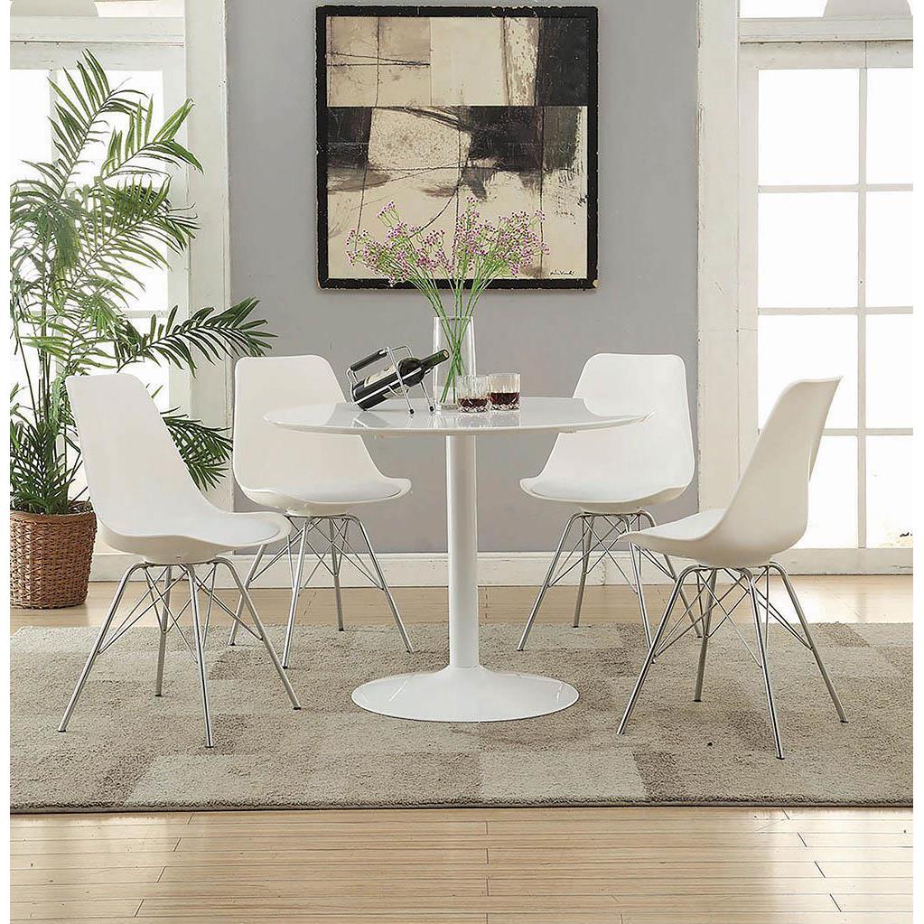 Retro styling meets contemporary ambiance in this round dining table. it features a roomy round table top that's perfect for a night of texas hold 'em or morning coffee and doughnuts. table is fashioned with a delightful tulip style table base. it features a powder-coated finish over metal for an enduring appeal. add matching comfortable chairs (available separately) for a set that goes great in a casual kitchen dining area or home bar.