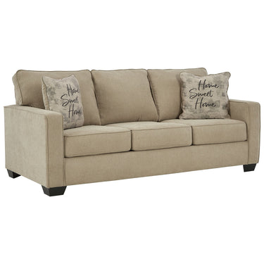This queen sleeper sofa sets the foundation for all proclaimed casually cool spaces. Adorned in a soft, neutral upholstery, it features track arms and welted seat cushions. Charming accent pillows perfect the laid-back vibe. A pull-out queen mattress in quality memory foam comfortably accommodates overnight guests.
