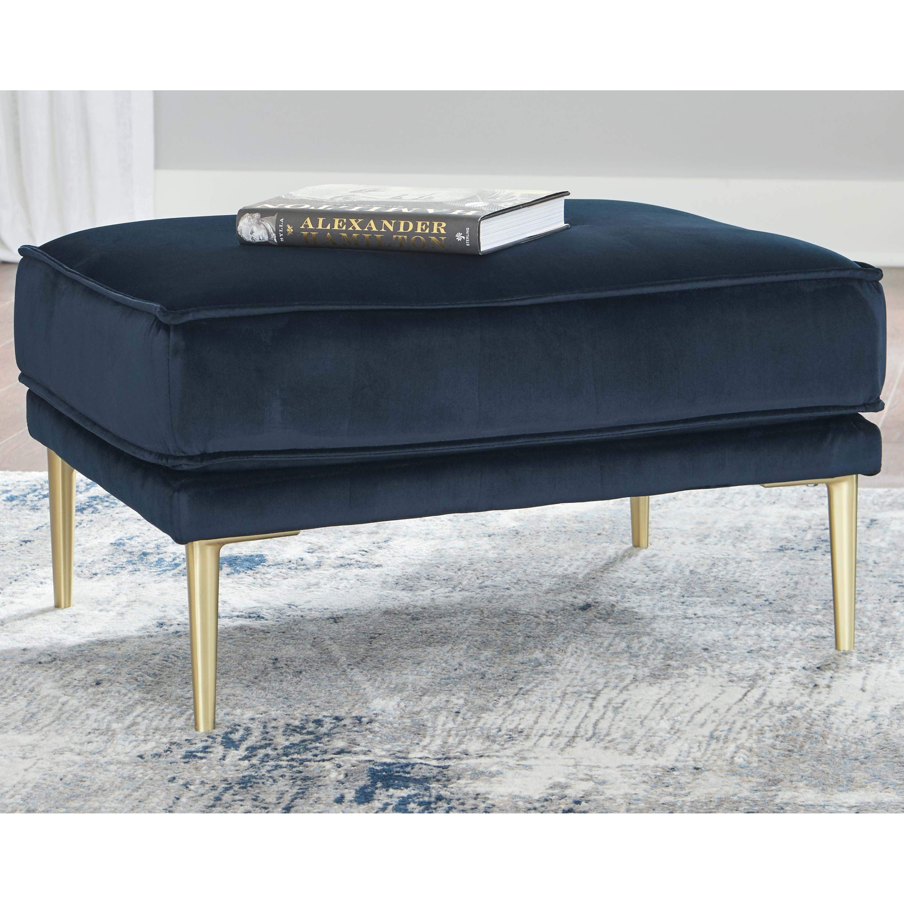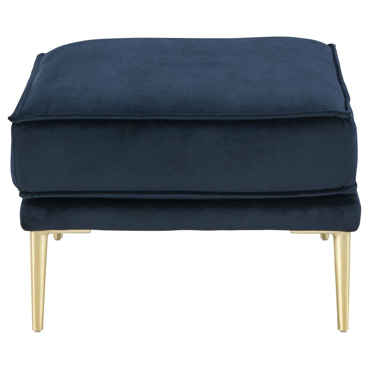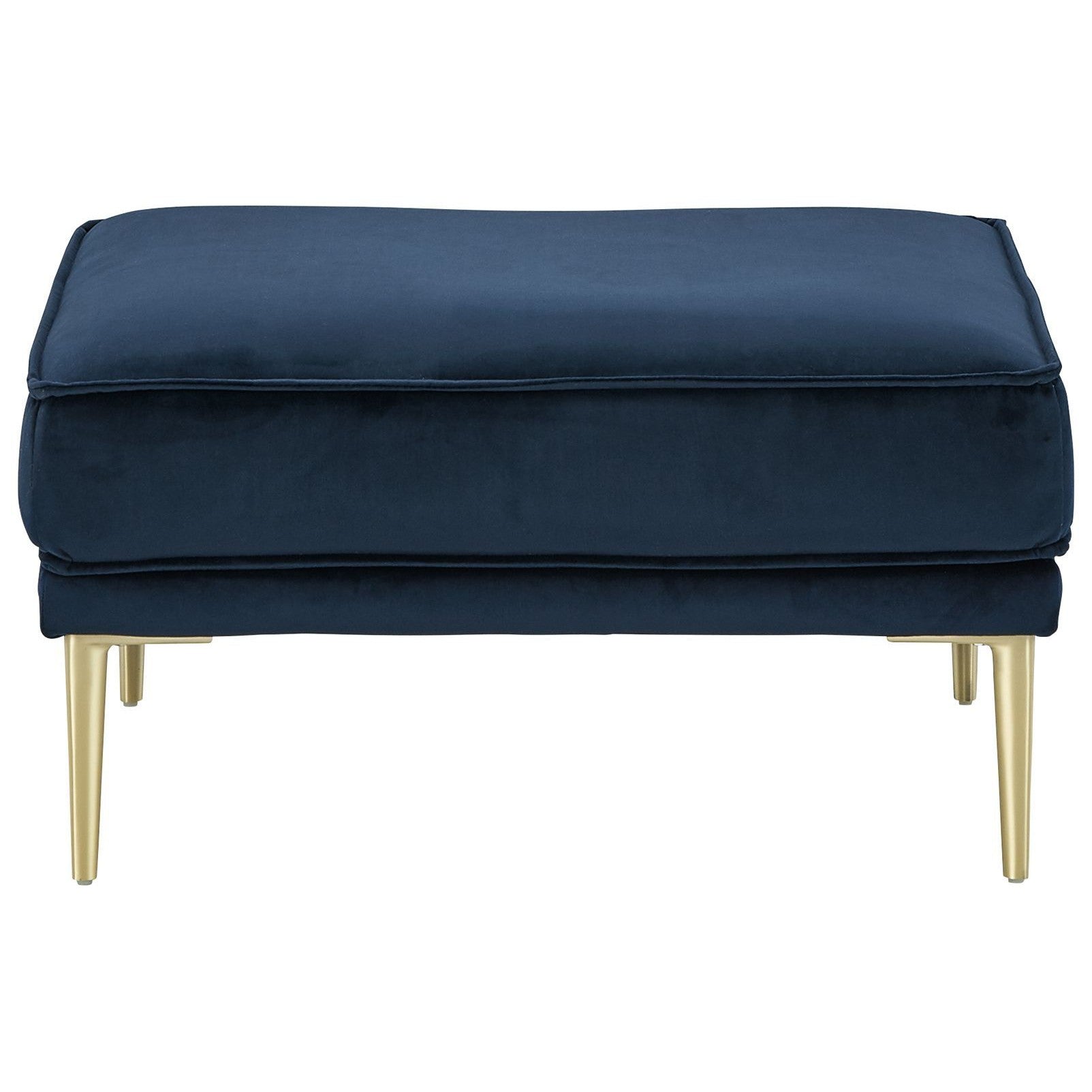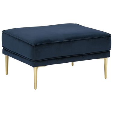 Get comfortable with a modern aesthetic when you add this ottoman to your home or office. The clean, linear design in classic navy blue fits so well into any sophisticated space. With soft-to-the-touch polyester upholstery and a metal accent leg in a bold brass-tone finish, this ottoman elevates your decor to up-to-the-minute cool.