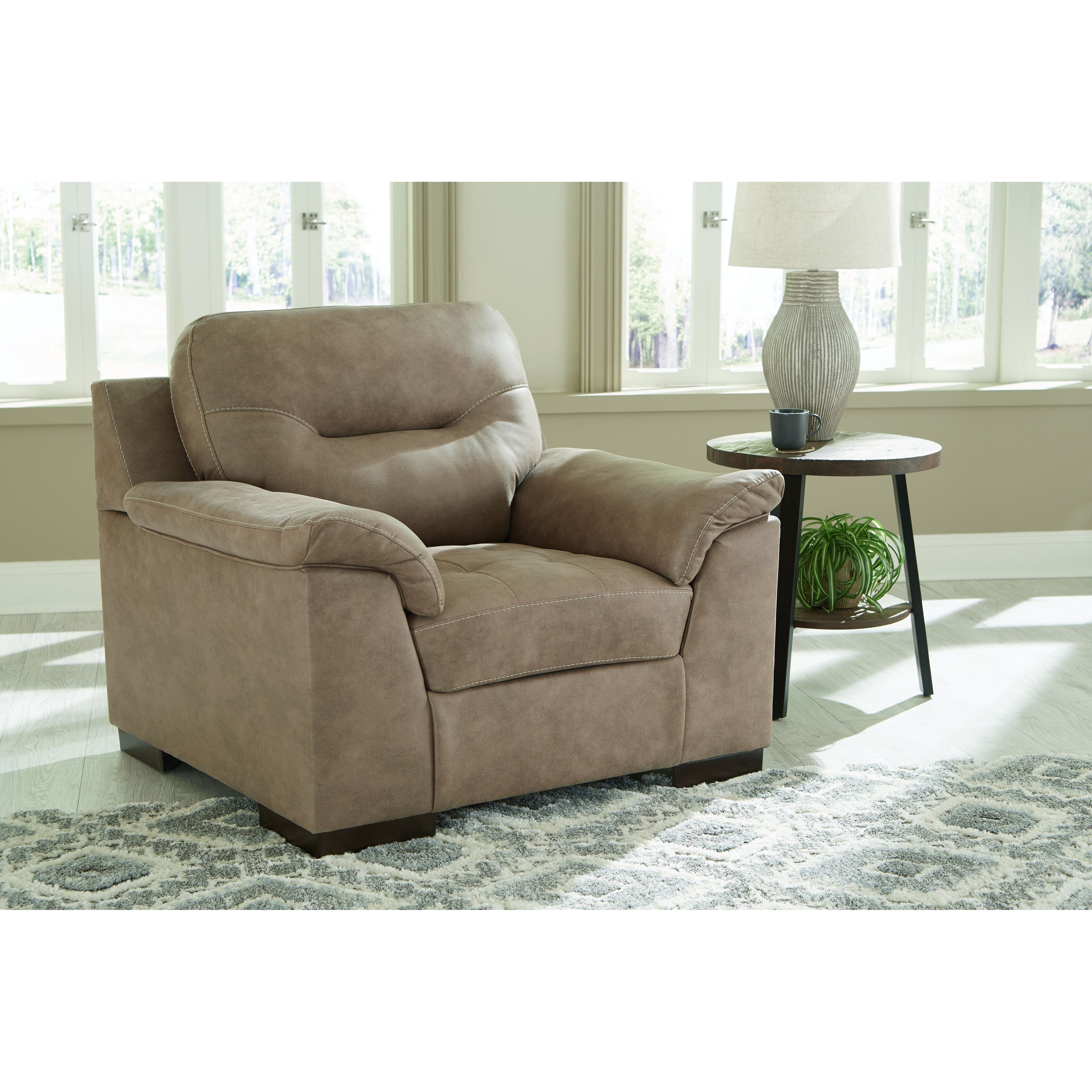 For a fresh spot in your space, turn to this designer chair and ottoman. Wind down at the end of a long day when you sink into this canyon of comfort.