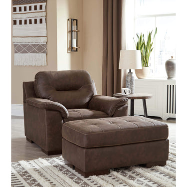 For a fresh spot in your space, turn to this designer chair and ottoman. Wind down at the end of a long day when you sink into this canyon of comfort.