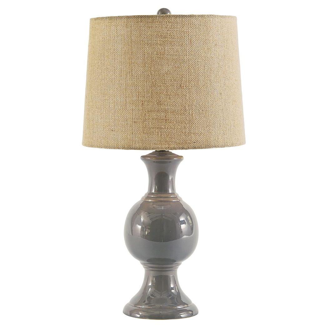 This table lamp is a casual yet attractive addition to your home. Light shines down beautifully onto the elegantly curved base and throughout your room. Lustrous glazed ceramic allures with a handsome gray hue.
