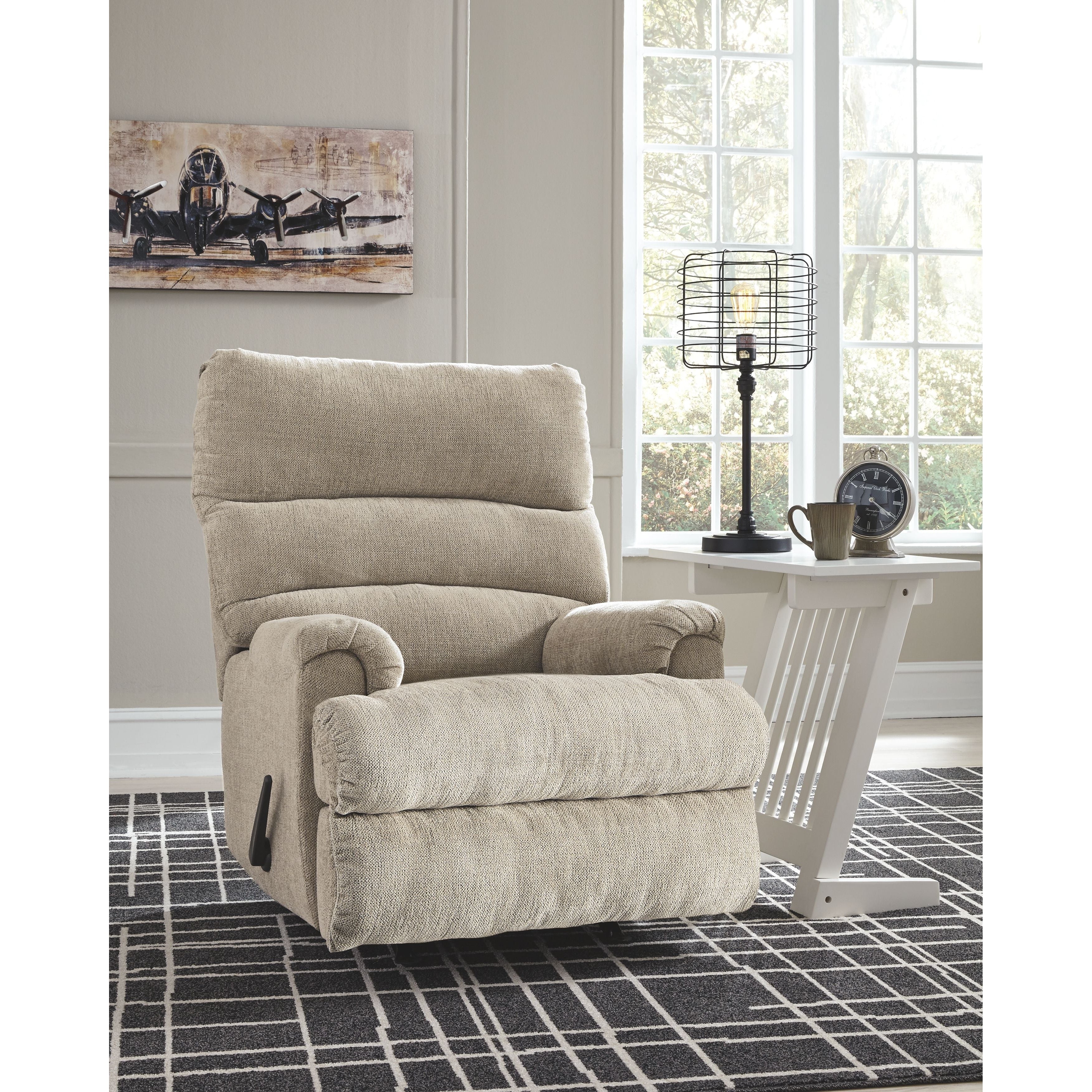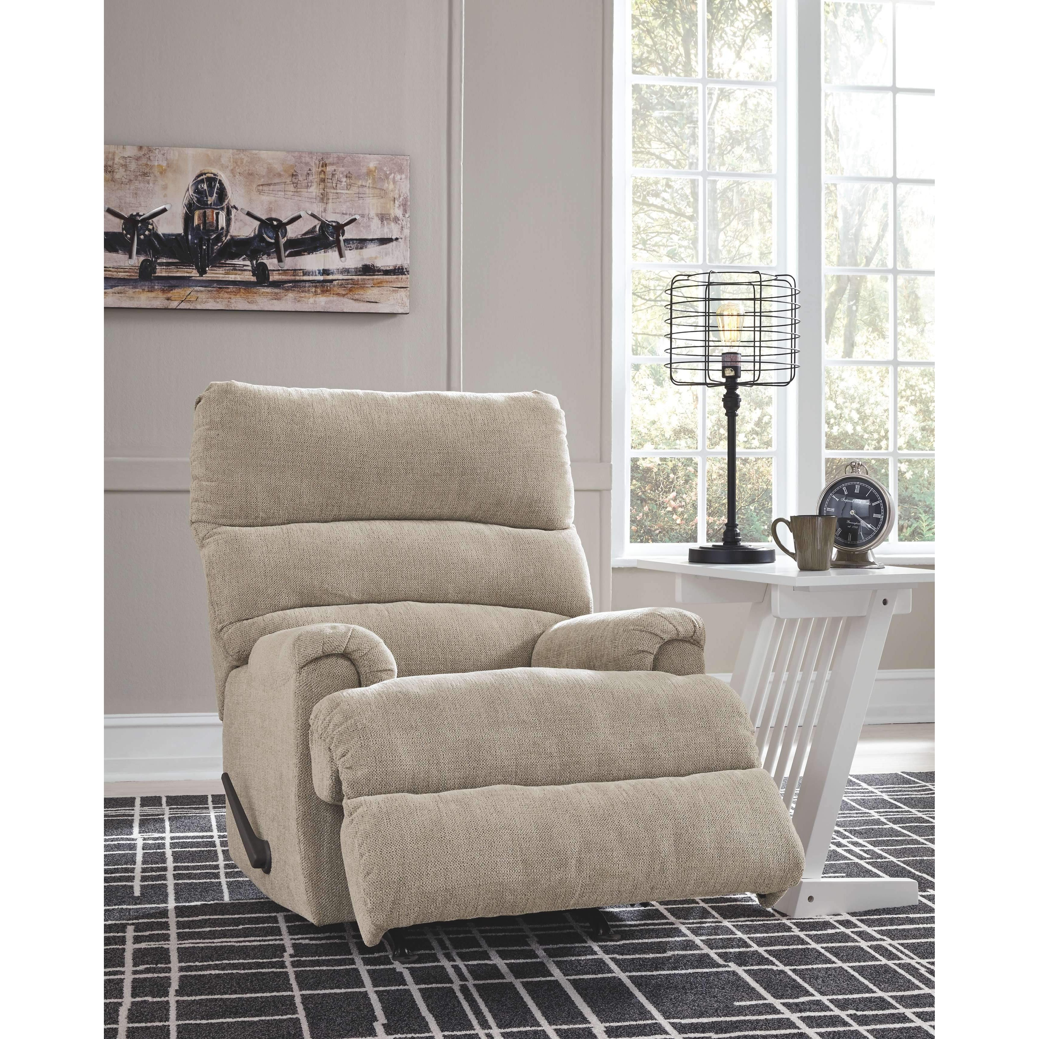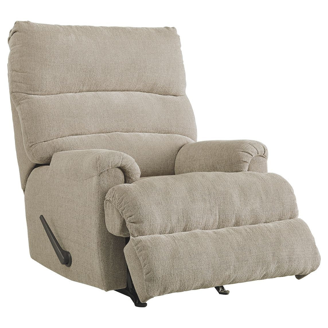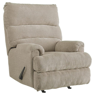 Roll out a cool look for your man cave or femme den with this indulgent recliner. Waterfall cushioning on the high back is paired with a double-roll footrest for a high-style aesthetic that cradles you in comfort from head to toe. Tweed-weave neutral upholstery is decadently soft and loaded with texture.