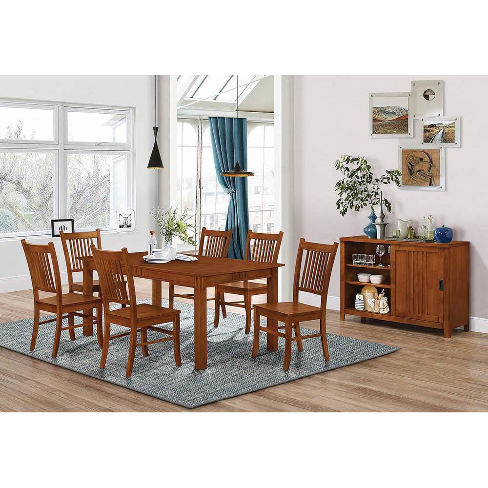 You and your loved ones will enjoy meal after satisfying meal in this durable, wooden chair. its simple design makes it an ideal option for casual home dining. with a medium brown finish, it enhances a traditional dining area with a touch of country charm. this table features a slatted wood seat back for sturdy support. a medium brown finish lends a touch of country-style charm.