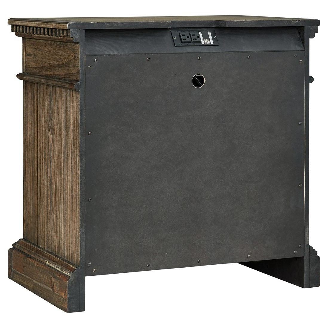 Curate a vintage-inspired retreat from the modern world without setting foot in a flea market. This nightstand is draped in a dreamy finish that brings out the wood's natural beauty, while dark pewter-tone bar pulls on smooth-gliding drawers have an hammered feel. Despite the timeless tone of the nightstand, you won't need to abandon your high-tech lifestyle entirely; the piece features AC power and two USB ports for convenient bedside charging.