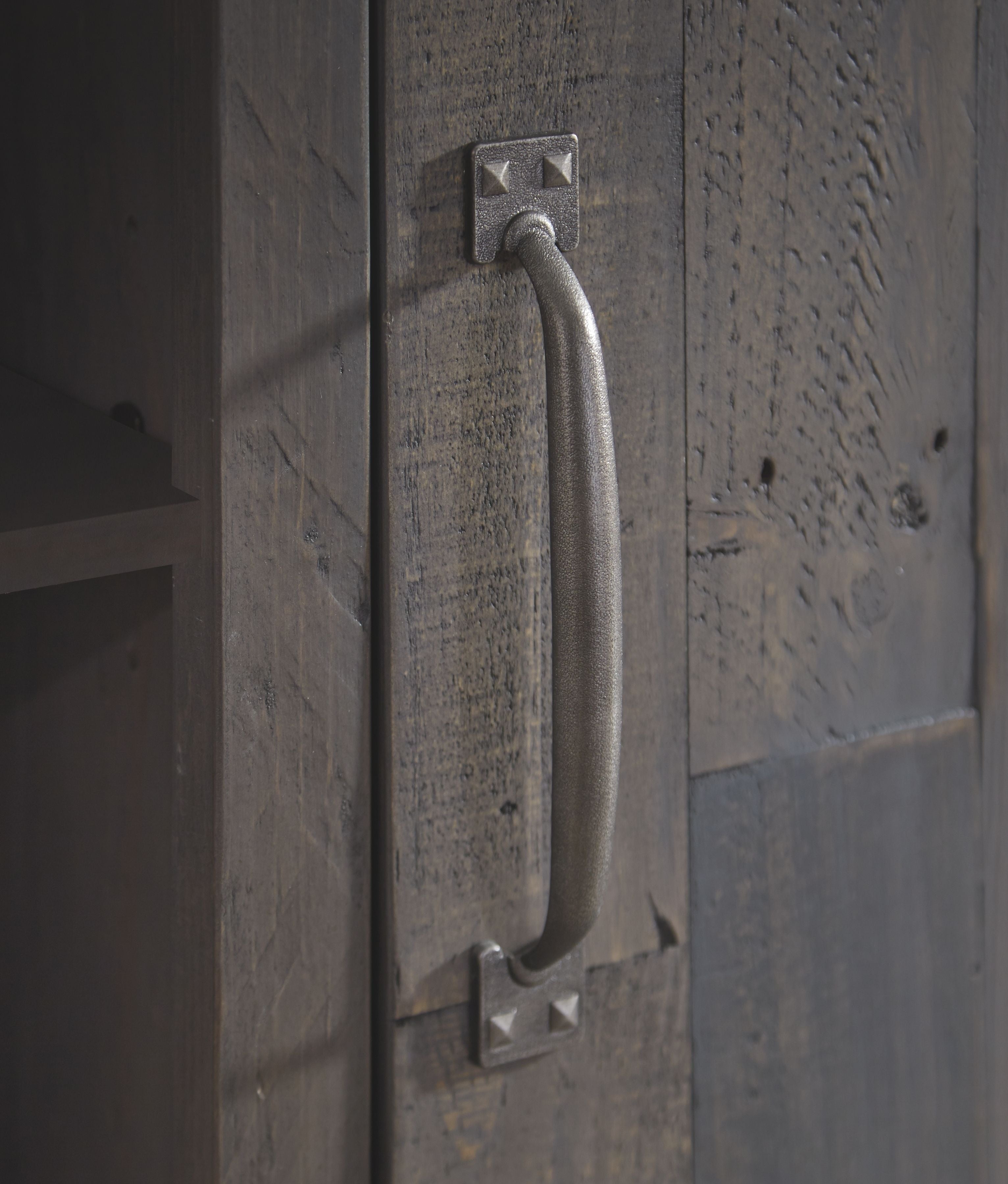Made with Pine solids using genuine reclaimed material that embraces nail holes and aged grain characteristics. Coloration is in an industrial gray finish. Compatible with our W100-02,101 small fireplace units or use an adjustable shelf.