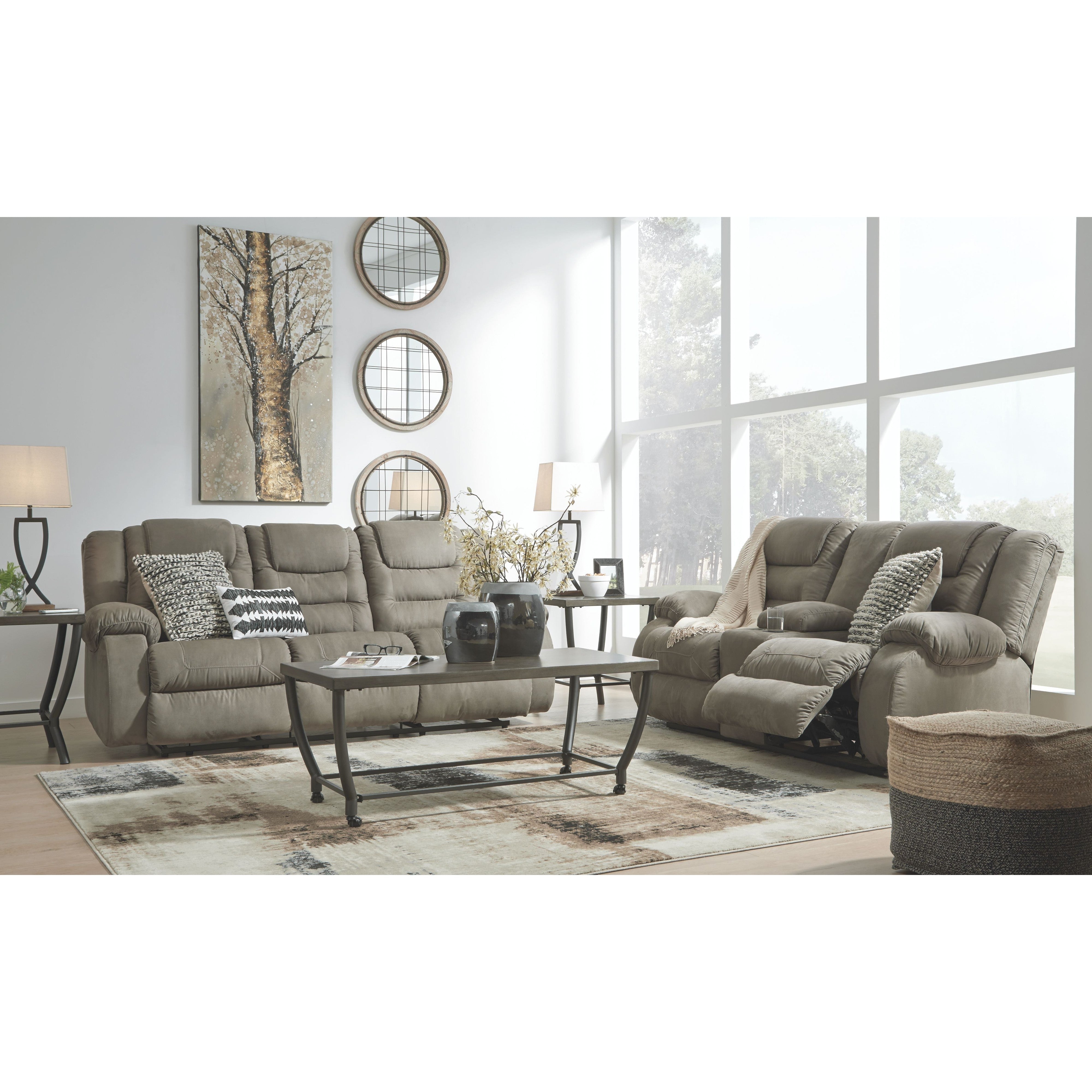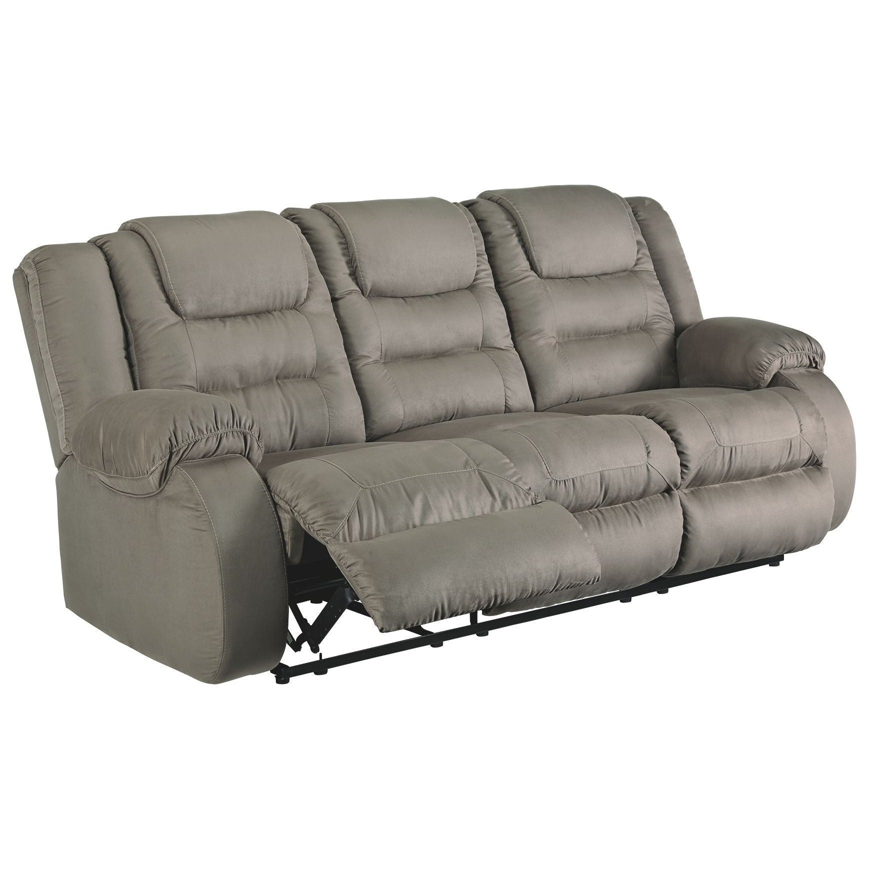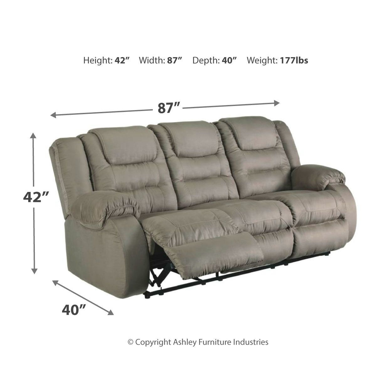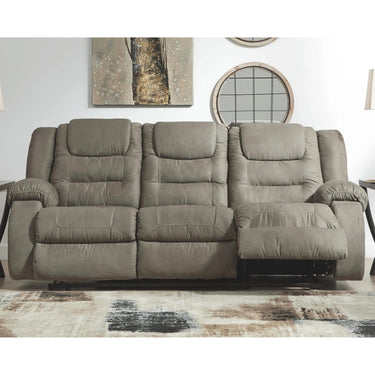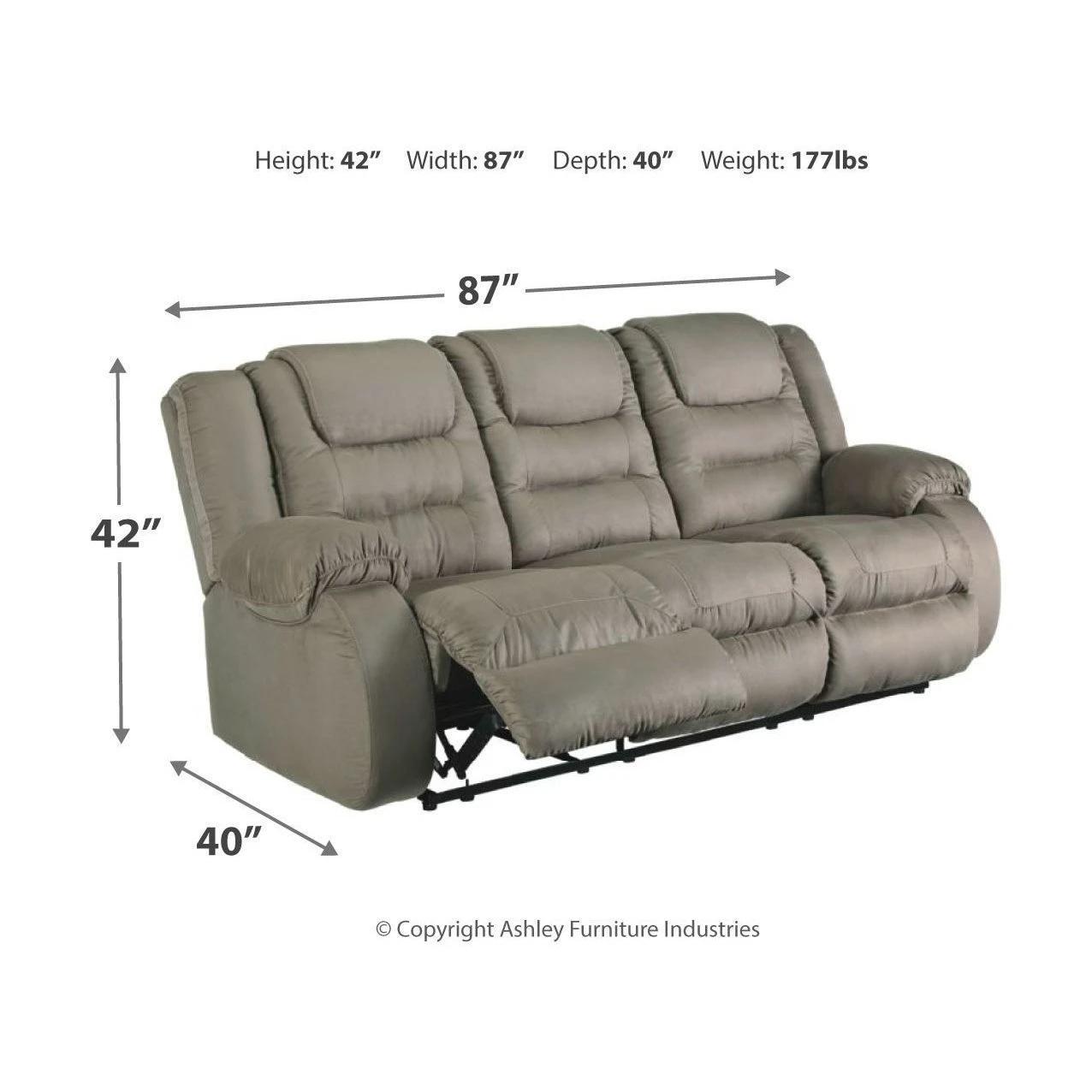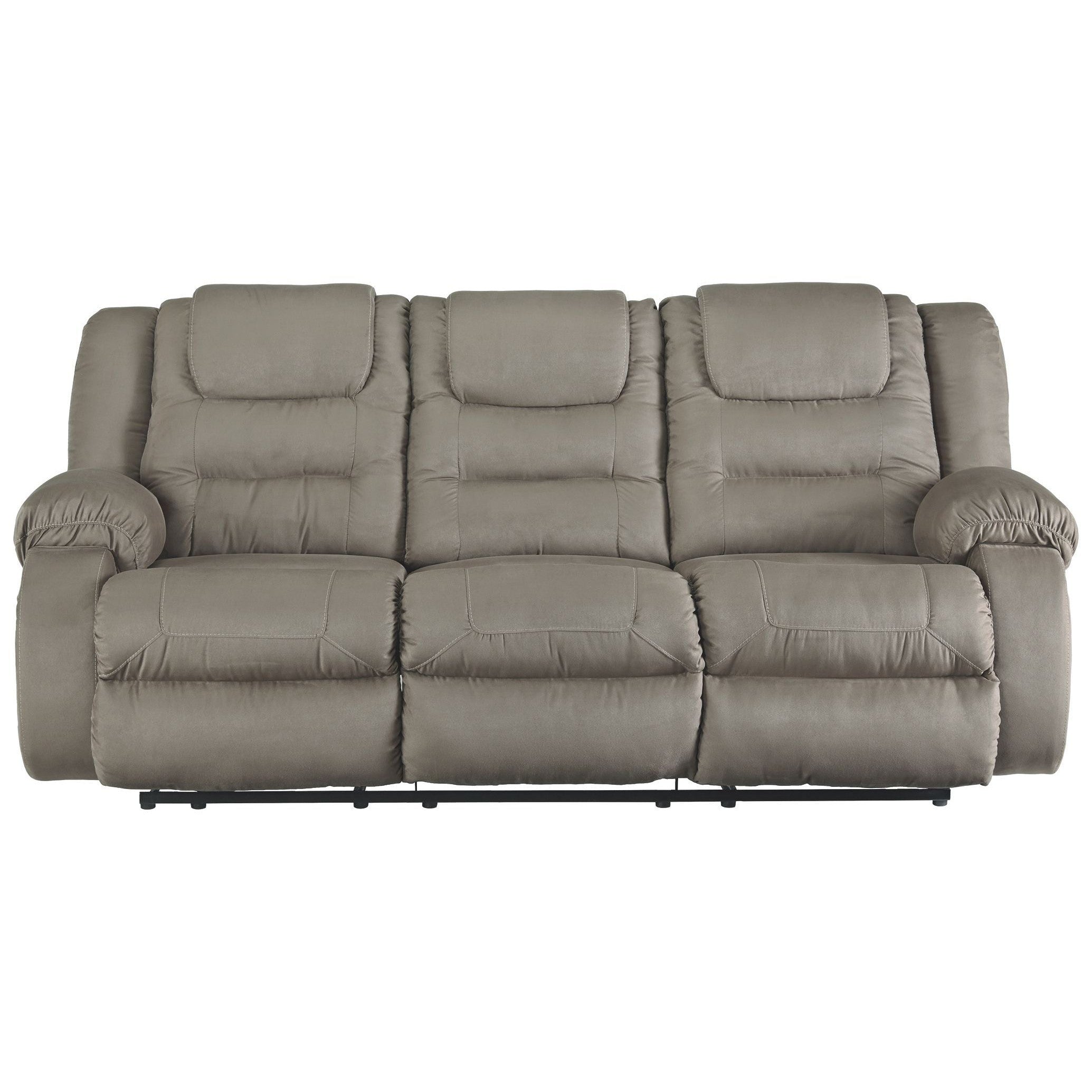 Comfort is yours for the taking with this reclining sofa. Supportive back is plush in all the right places, enhancing your seating experience. Feel-good fabric is elevated with detailed stitching. Rounded sides are fashion-forward and topped with pillowy armrests. With one easy pull, you're on your way to endless relaxation.