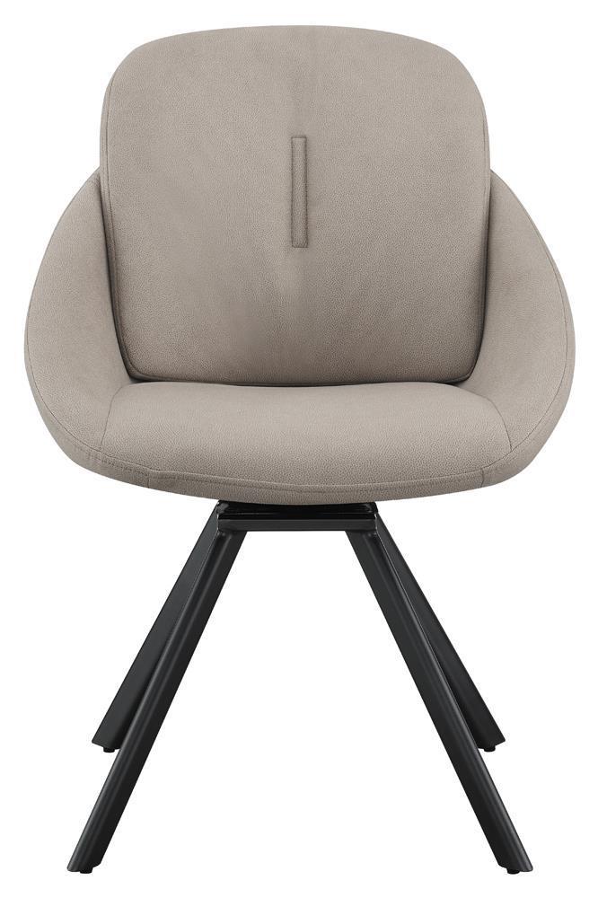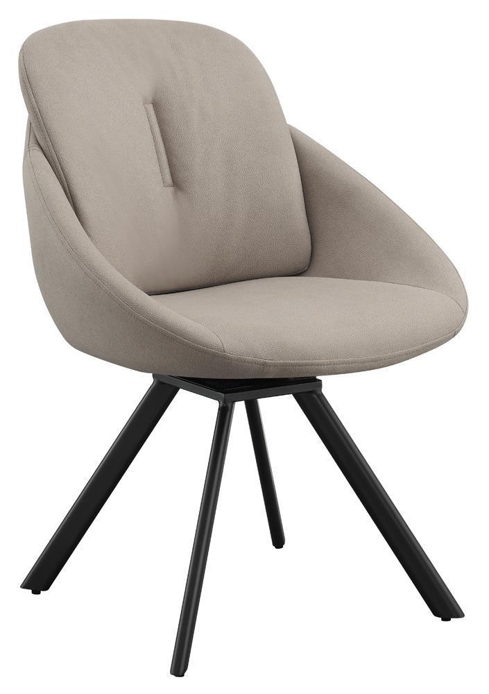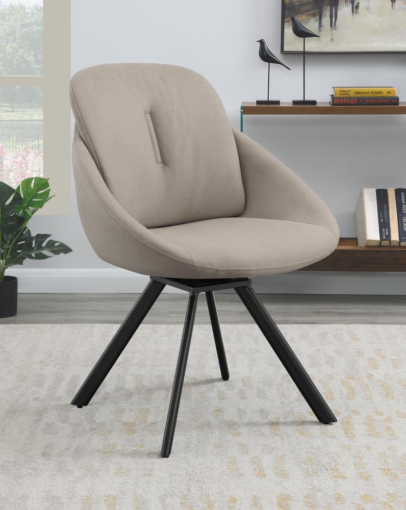 Playful lines and shapes tie together this contemporary dining chair. perfect for casual, modern style homes, this dining chair offers guests and family a comfortable padded seat, mounted to a versatile swivel base. the orbital shaped seat cradles you in its soft fabric and unique pintuck accent. mounted on exaggerated flared legs in a gunmetal finish, the neutral colors lend this chair to existing color palettes and decor. place this dining chair in a mid-century modern or contemporary dining space for a retro-inspired touch.