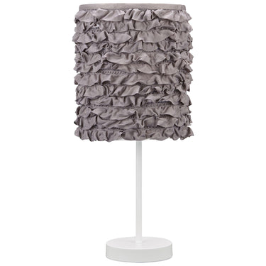 Add a touch of whimsy and informal style to your space with this metal accent lamp. Its clean, linear design is crowned by a fun and flirty gray ruffle drum shade. Whether resting on your nightstand or set upon a side table, this lamp delivers a cheerful aesthetic to your casual space.