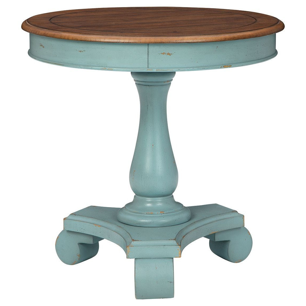 Achieve the vintage casual look you love with this accent table. A stylish addition with a simple design in antiqued teal and brown finishes, this accent table completes any room.