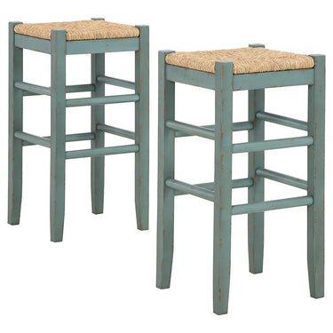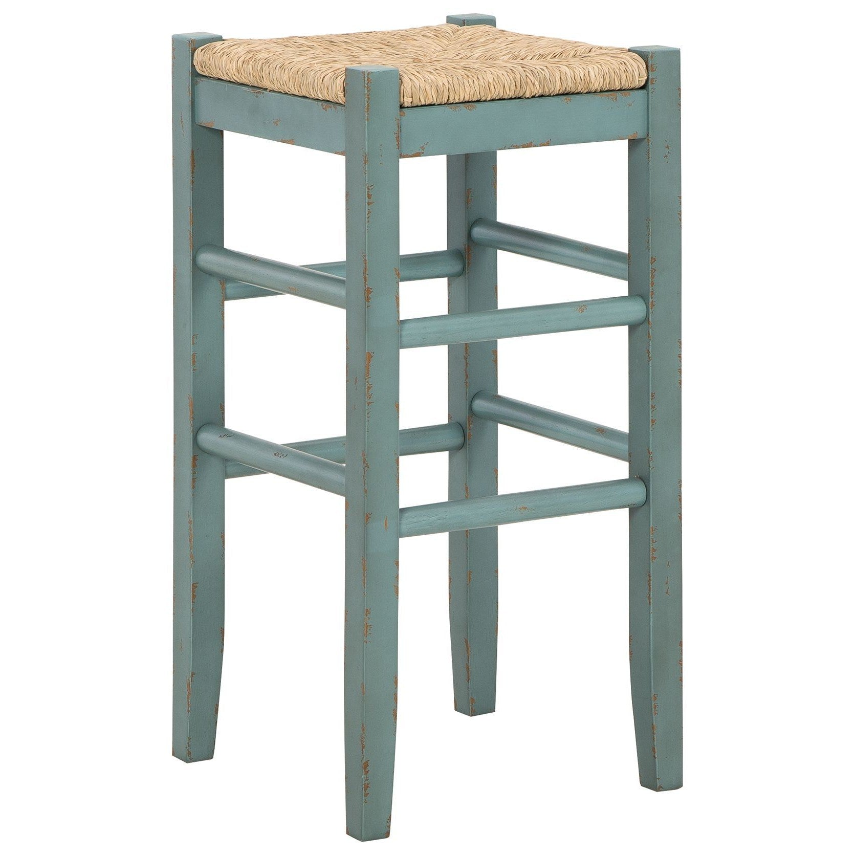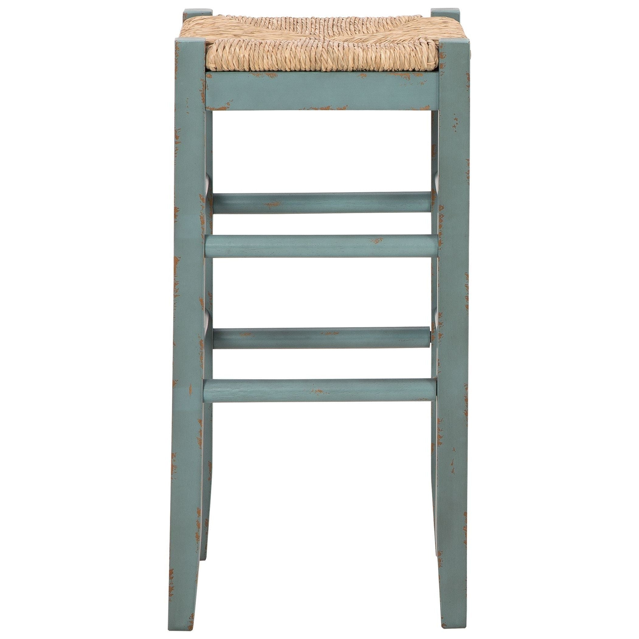 Bring the vintage casual vibe you love to the kitchen with this bar stool. A stylish seating solution in a blue rubbed-through finish, this charming stool completes your dining space with ease. The woven synthetic wicker seat and wood stretchers create an effortlessly beautiful look with endless possibilities.