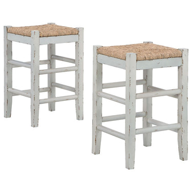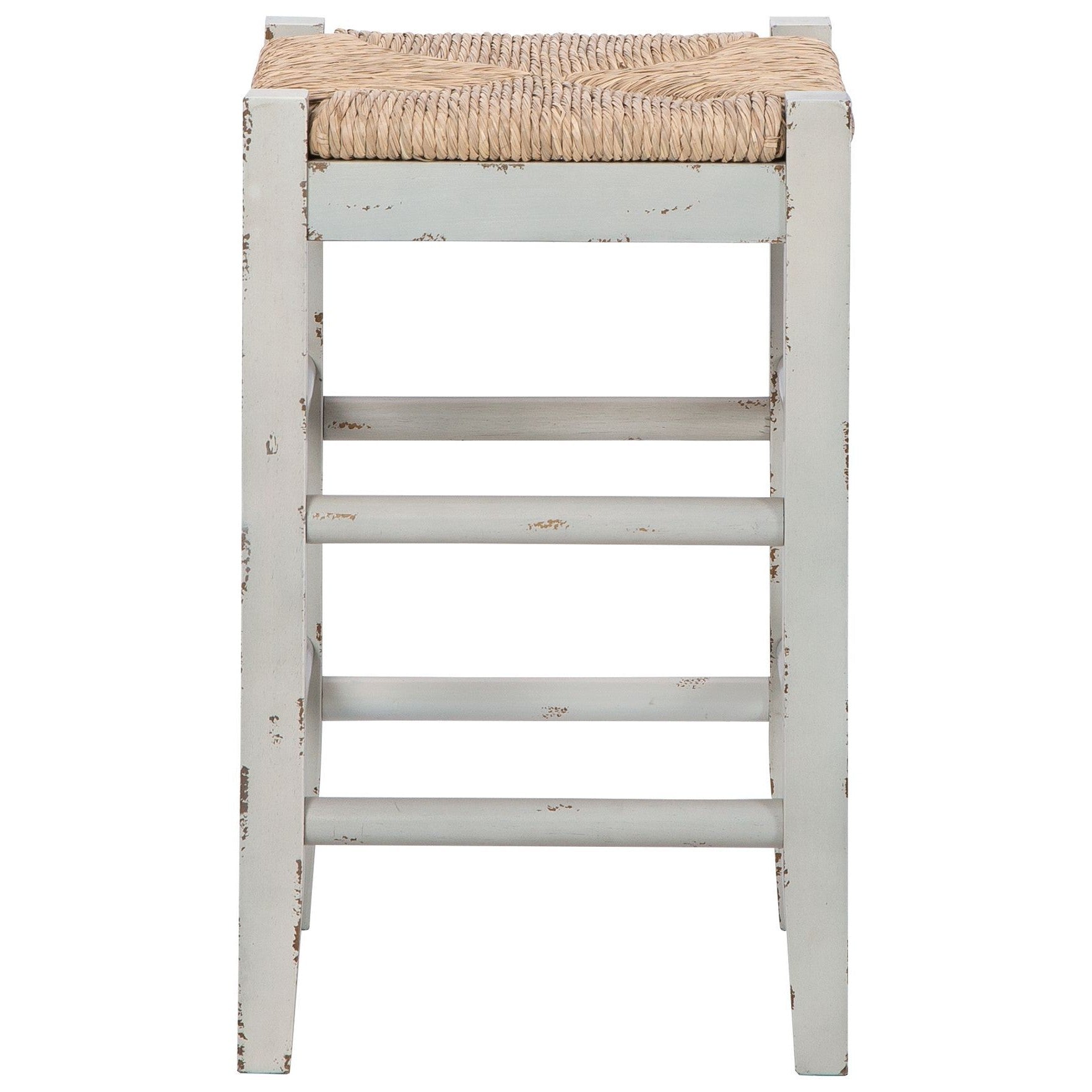 Bring the vintage casual vibe you love to the kitchen with this counter height bar stool. A stylish seating solution in a white rubbed-through finish, this charming stool completes your dining space with ease. The woven synthetic wicker seat and wood stretchers create an effortlessly beautiful look with endless possibilitie